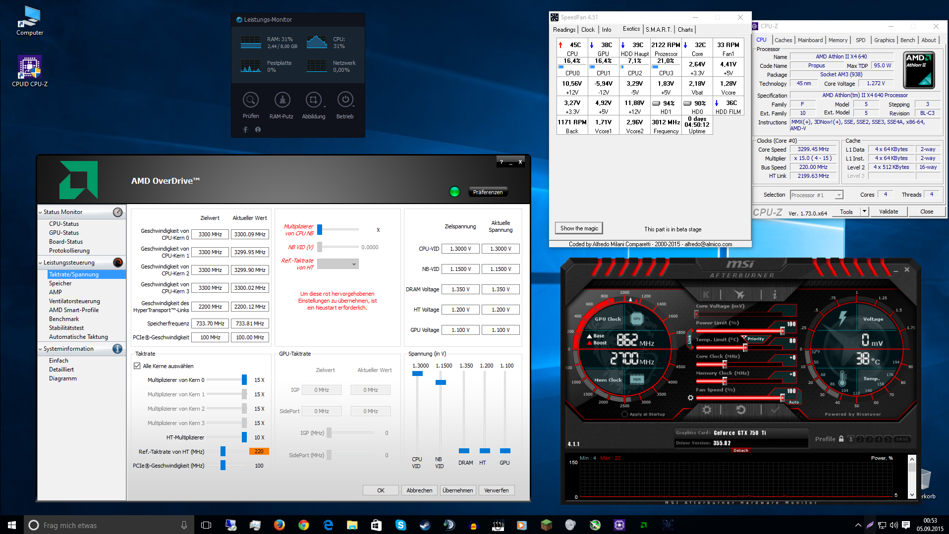 CPU : AMD Athlon(tm) II X4 640 Prozessor (3GHZ auf 3.4 GHZ Übertaktet) --- 2 Jahre Alt ---