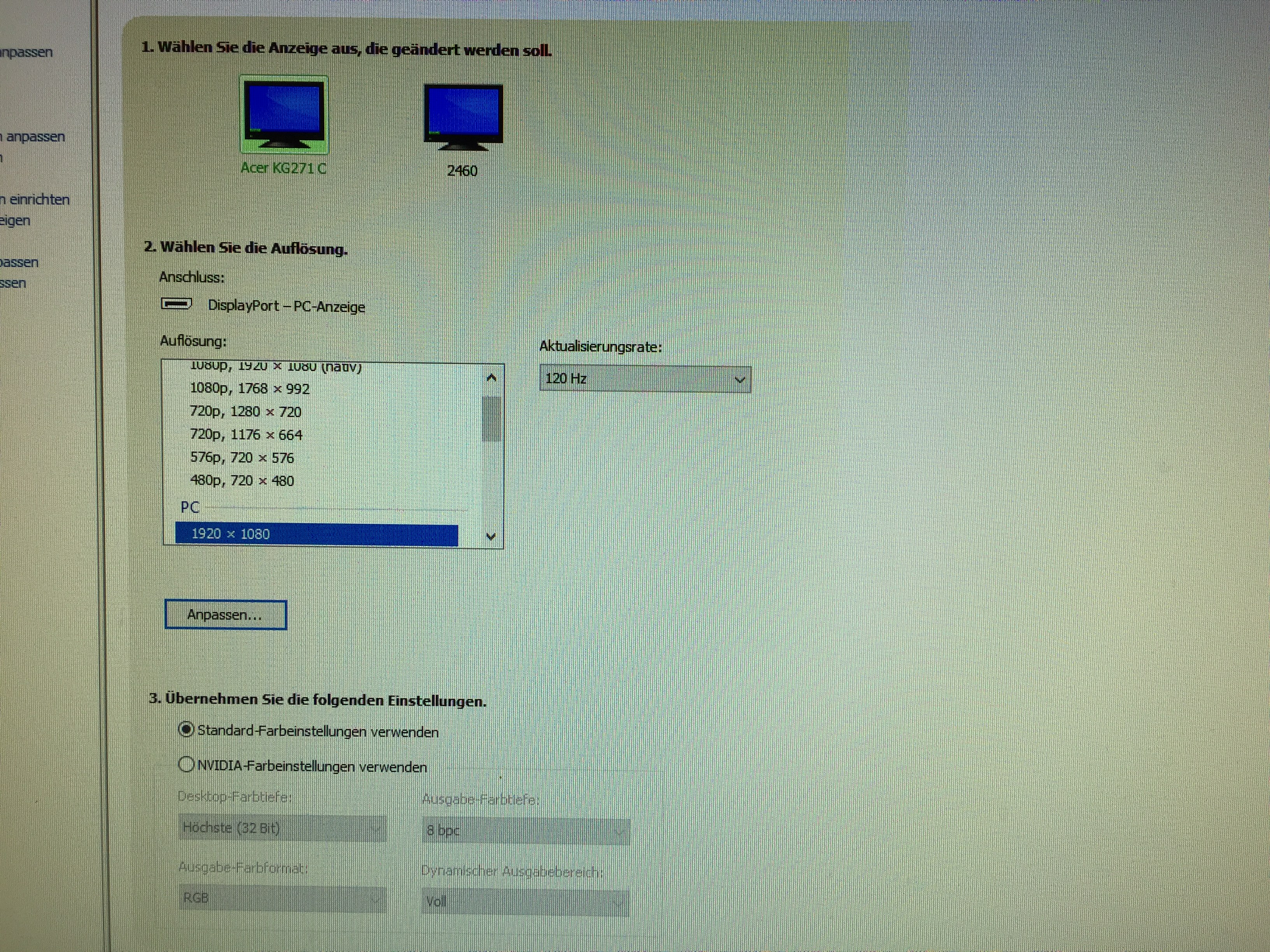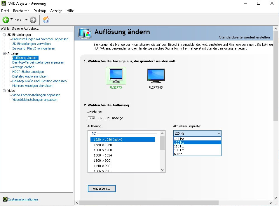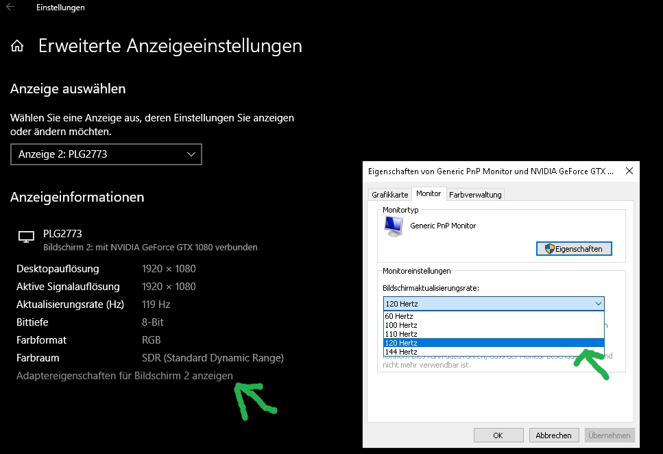 Stell auf dem Desktop auf 120Hz runter dann taktet sie wieder runter.