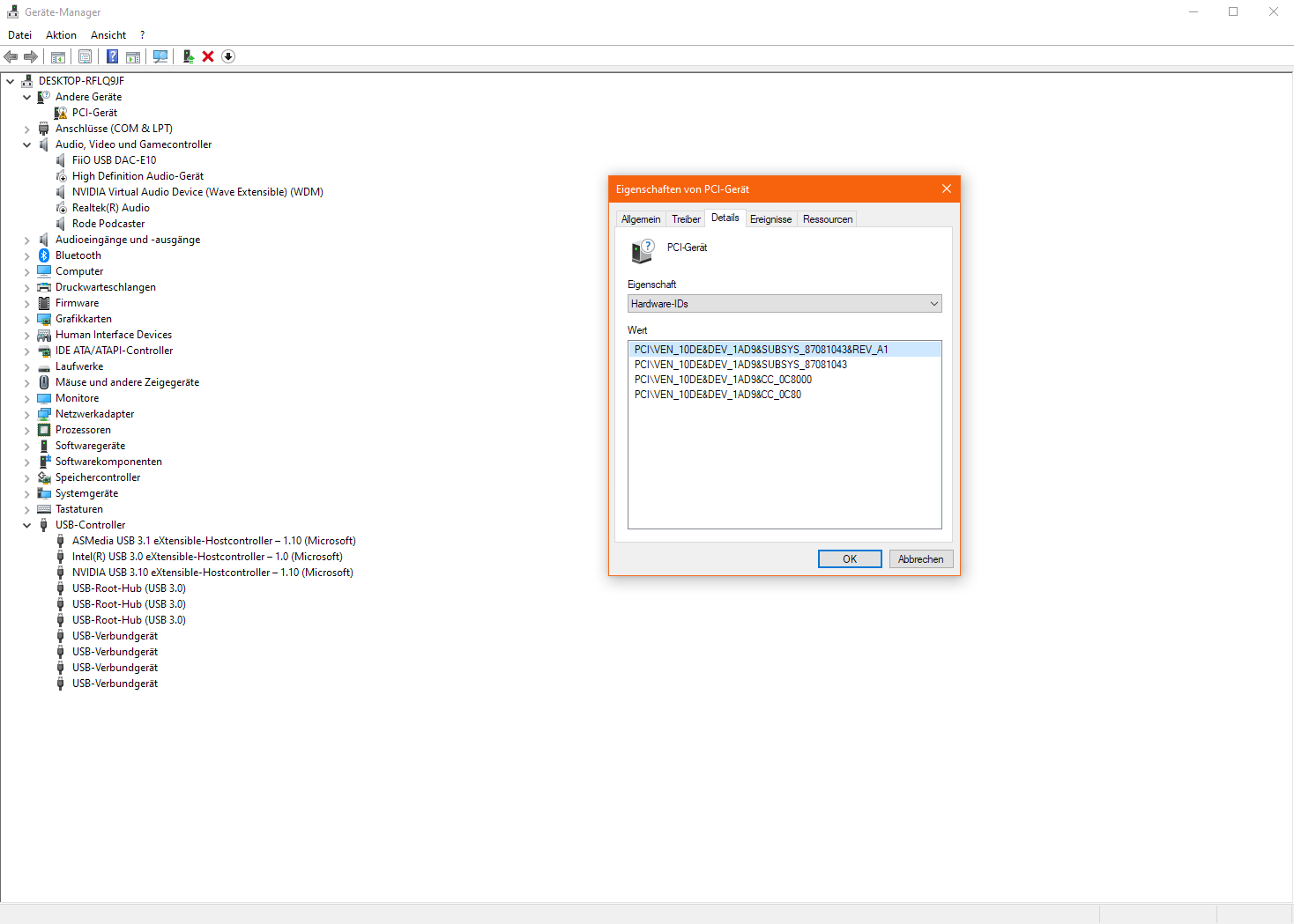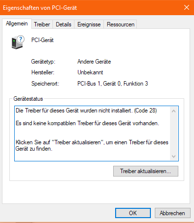 Außerdem hab ich im Geräte-Manager ein unbekanntes/nicht identifizierbares Gerät gefunden (s.A.). Dazu mal gegoogelt mit der Hardware ID und leider nichts brauchbares gefunden...