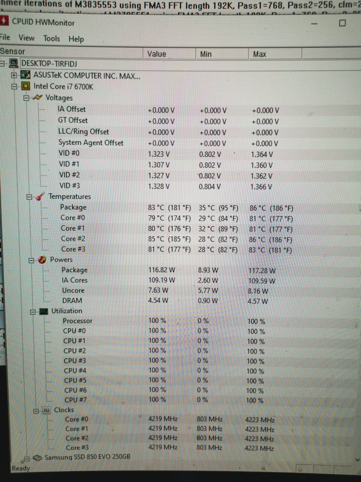 Angefangen habe ich mit der cpu, also Prime95 gestartet und meine Augen immer auf dem HWMonitor nebei gehabt(img wa0000.jpg)Lief einwandfrei ohne Abstürze.