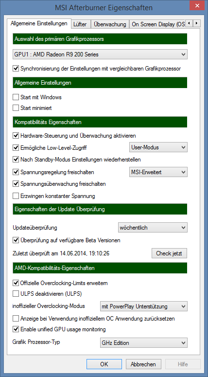 nach der Verstellung in AB wird nur die höhere VCore von der Grafikkarte übernommen, nicht aber der Takt. Getestet mit 3D Mark und verschiedenen Spielen (OSD View).