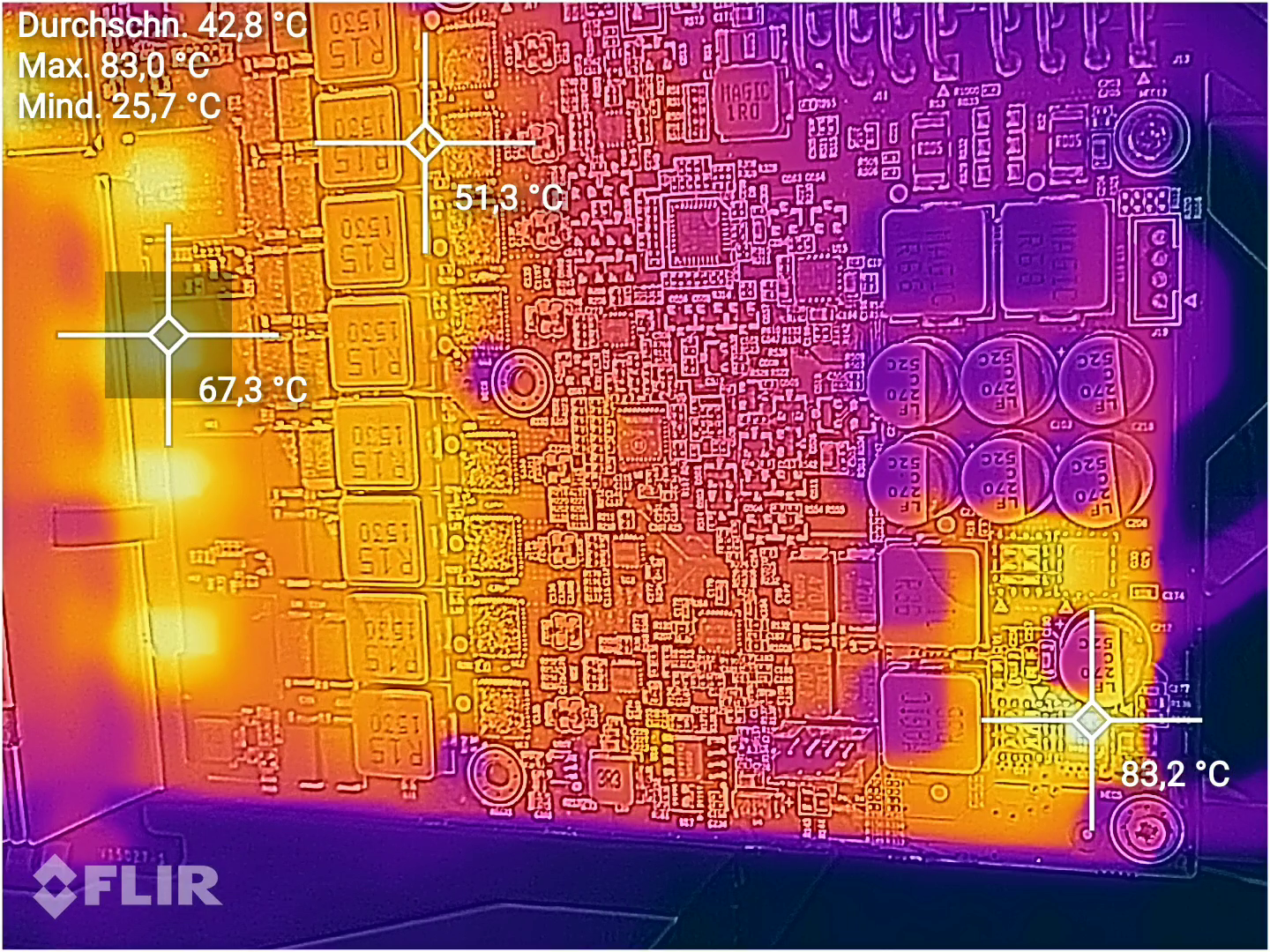 Das sieht man erst nach der Treiberinitialisierung, weil erst dann kurzzeitig alle RAMs hoch Takten und damit erst die Phasen richtig belastet werden (erst dann arbeiten übrigens auch die restlichen 7 vGPU Phasen, sonst läuft nur die oberste der 8 Phasen)