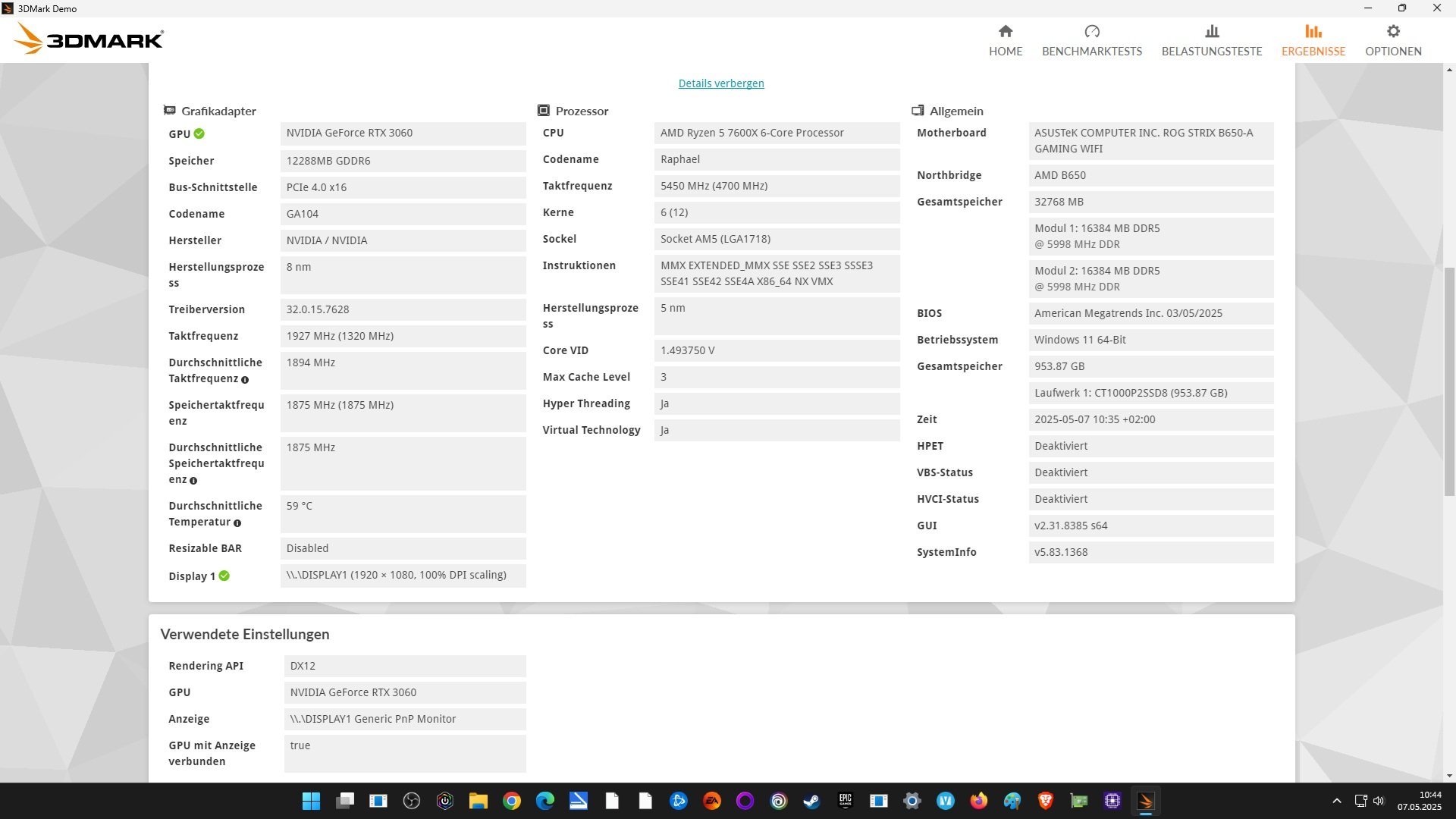 - Arbeitsspeicher (RAM): DDR5 32 GB 6000 MT/s