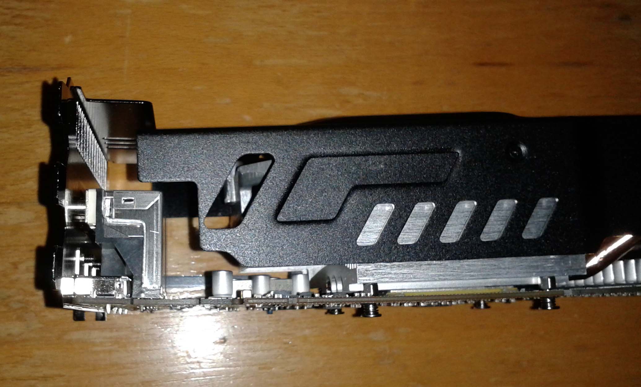 schaut für mich so aus als würde, die gpu kühler und die heatpipes die ganze karte richtung lamellen ziehen^^
