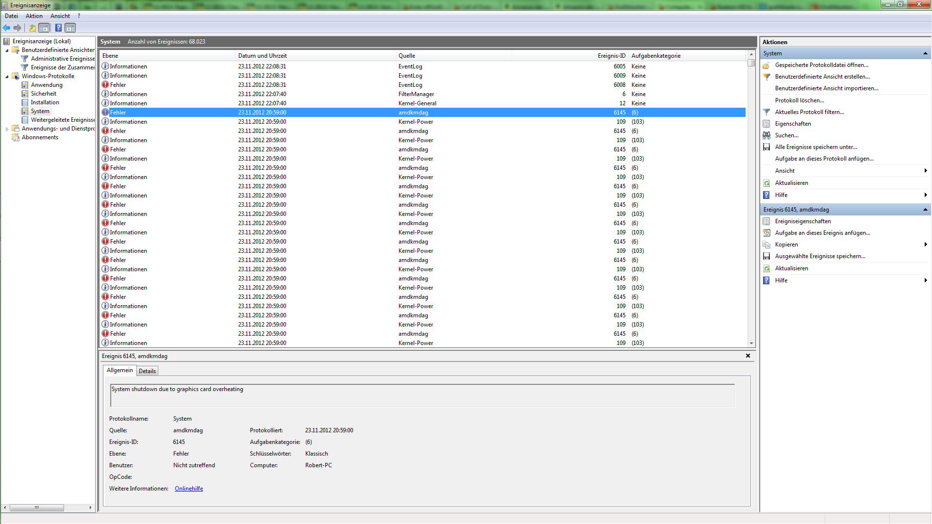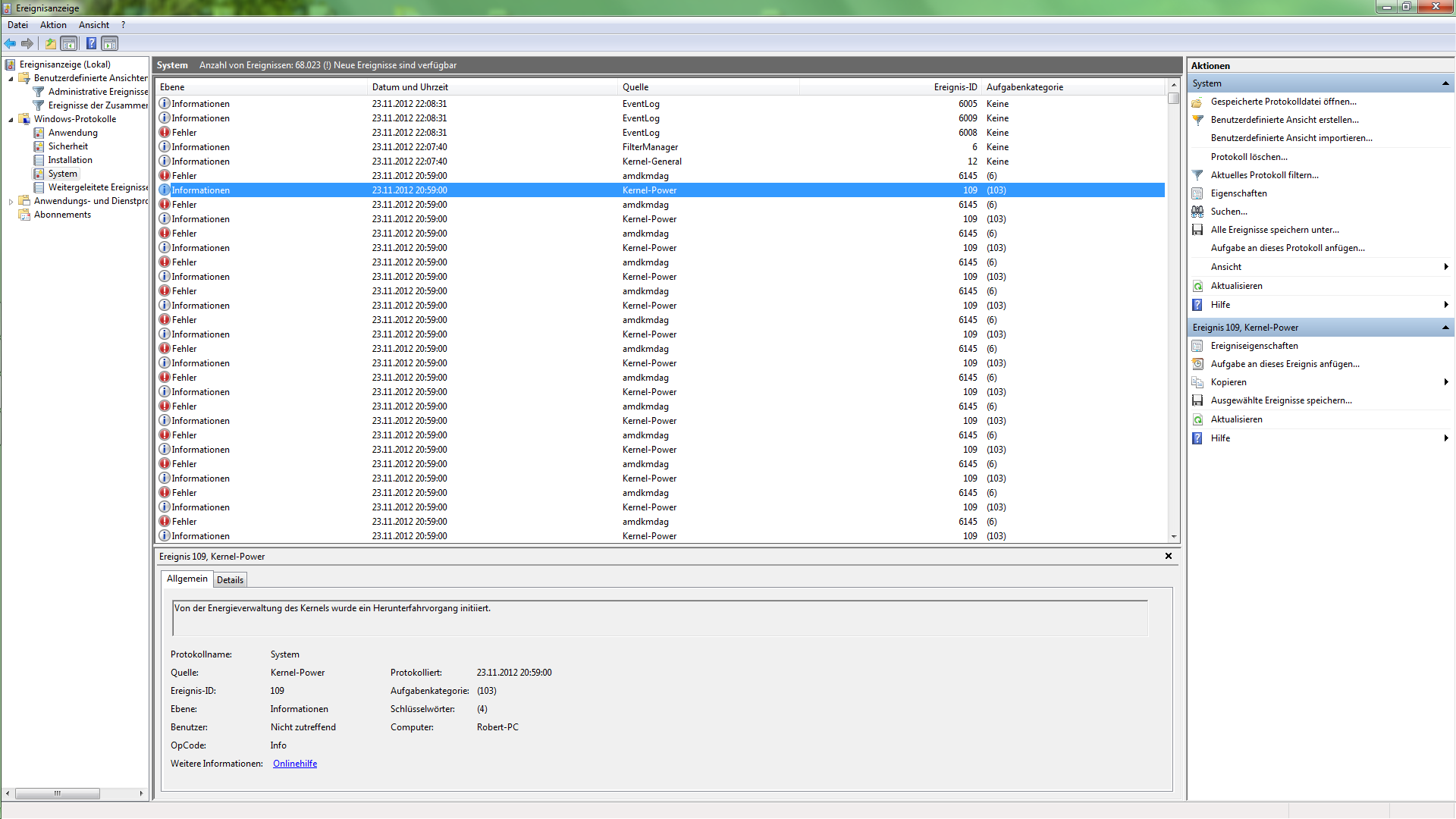 Die Nachrichten vom Ereignisprotokoll häng ich als Bild an.