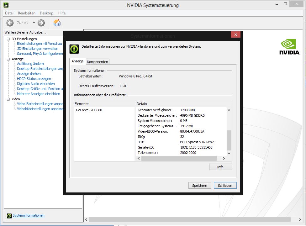 Ich Habe da ein Kleines Problem mir meiner Grafikkarte oder meinem Mainboard, und zwar wird meine Gigabyte GeForce GTX 680 OC, 4GB nicht im PCIE3,0 erkannt trotz Mainboard was PCIE 3.0 unterstützt, und ja ich habe alles richtig angeschlossen, Also Grafikkarte in den PCIE 3,0 slot und auch im Bios so eingestllt.
