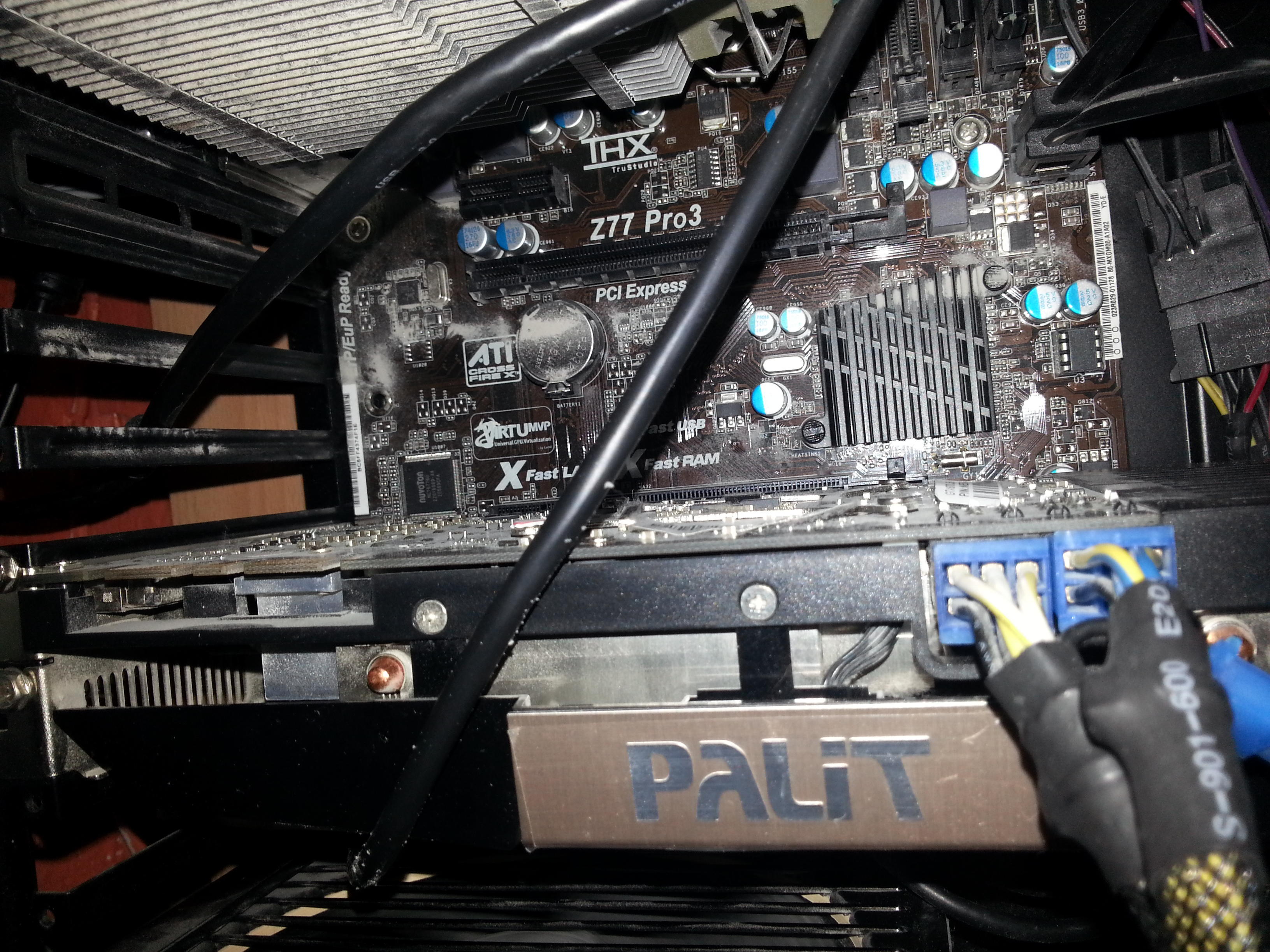 ich habe irgendwie misst gebaut denke ich mal. Heute ist meine neue SSD angekommen und wollte die natürlich sofort einbauen. Habe dann auch bemerkt das meine andere SSD auf Sata 2 anschluss war , hab sie dann auch auf Sata 3 umgesteckt. Nach dem Starten des Rechners wollte er aber von der HDD booten. Hab dann wieder umgesteckt dies das. Aber immer das selbe, bis mir später auffiel im Bios die SSD wieder 1. Platz zu stellen. Hab dann die Grafikkarte wieder eingebaut jedoch hatte ich kein Bild. Die Grafikkarte lief ganz normal. Hab sie dann auf nen anderen Slot gesteckt und tadaa es lief wieder. Ich vermute mal das ich den anderen Slot beschädigt habe, keine Ahnung wie -.-. Jedoch verdeckt jetzt die Grafikkarte 3 Sata slots , wo auch die Hdd angesteckt ist. 1 ist frei, aber dann läuft ein Lüfter nicht, weil er an den Stecker dran kommt. Was kann ich denn da machen? Bin echt verzweifelt :/. Die Grafikkarte ist ne Palit Jetstream 670. Mainboard ist Asrock z77pro3.