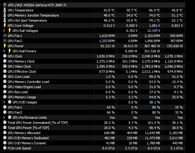 Sag ich dir ehrlich.. hab ich keine Ahnung von. Meine ehemalige 2080 Ti von Aorus hat mir jemand per TeamViewer undervoltet, da er die selbe hatte. Das hat hervorragend geklappt tatsächlich. Nein der Max Boost von 2050 mhz sind sehr selten. Bei CoD Cold War auf Max Settings taktete er ab und zu mal auf die Zahl, ansonsten habe ich das noch nicht wirklich beobachtet, werde ich aber mal tun mit Gpu-Z u. den Sensoren?