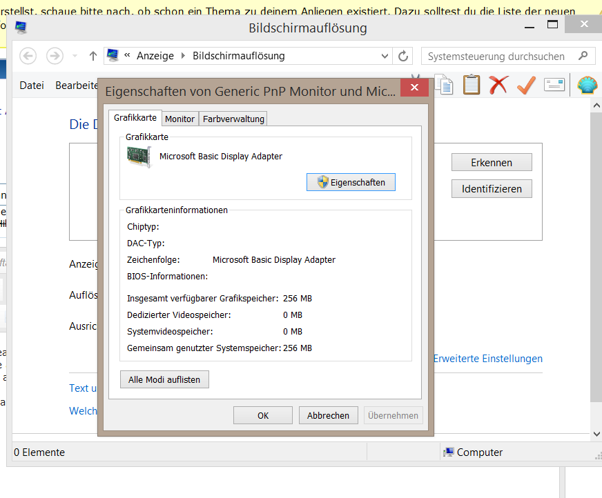 Wenn ich unter Bildschirmauflösung gehe, sieht es so aus: