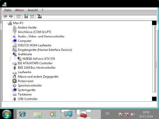 Ich schaute im Geräte Manager nach, dort war bei Grafikkarte ein Dreieck und Ausrufezeichen (es stand aber nicht Standard-VGA-Grafikkarte oder sowas da, sondern es war schon der Name GTX-570 zu sehen!).