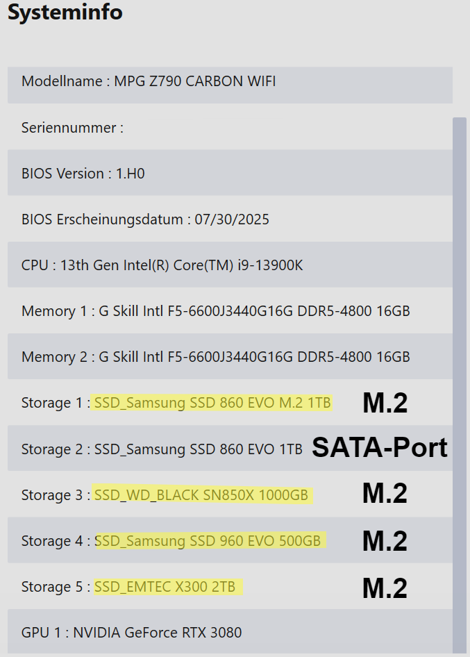 Wundert mich nicht, zu der Zeit, als das Board aktuell war, waren SSDs mit klassischem SATA-Anschluss deutlich verbreiteter als M.2 NVMe- oder SATA-Modelle.