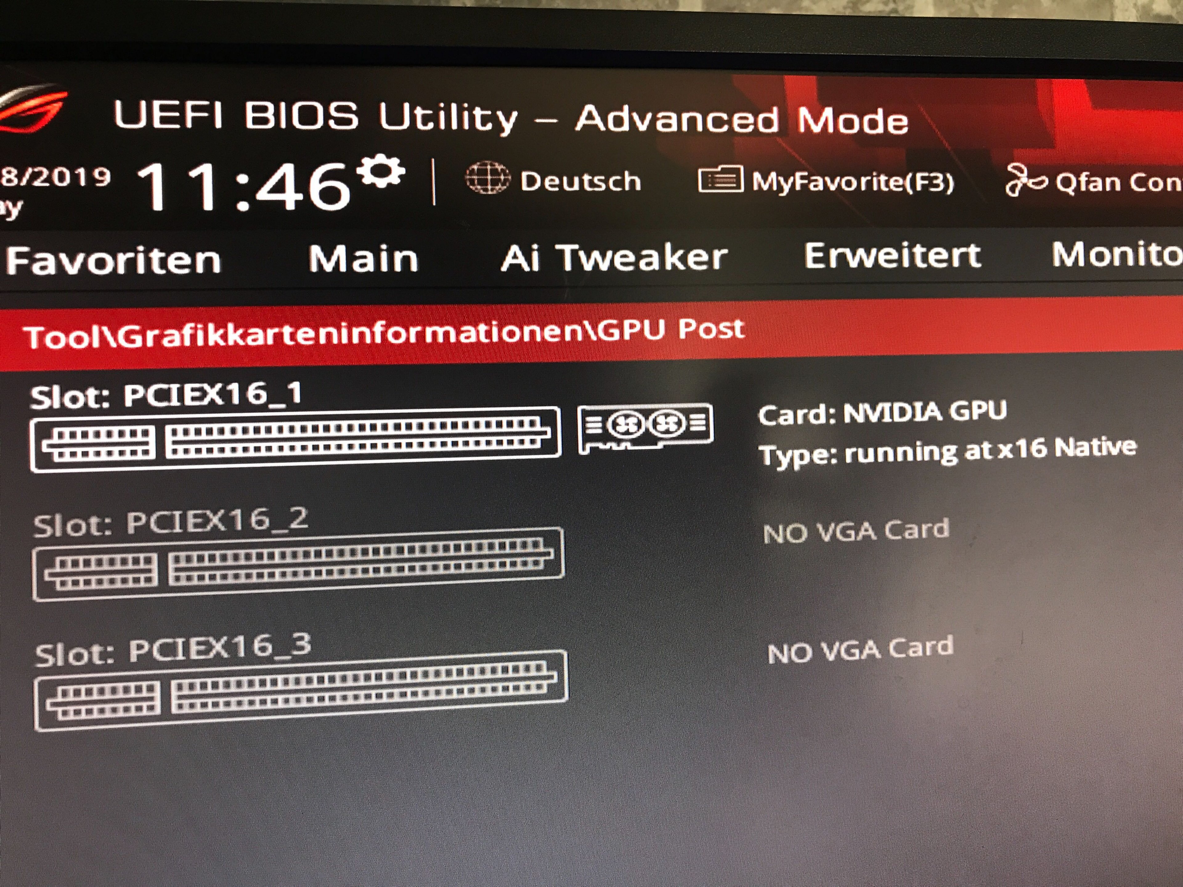 Ich habe dann im Geräte-Manager Geschaut und dort ist nur Der Microsoft Basic Display-Adapter zu finden. Im BIOS Taucht Die Karte aber auf. Ich habe Die Grafikkarte bereits einmal raus genommen und wieder Eingesetzt. (mit entfernter Karte piept der pc, er erkennt also das was fehlt) Mainboard Treiber von Der Homepage Geladen,