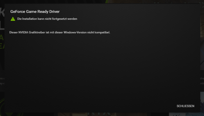 Beim Installieren von Geforce kam Die Fehlermeldung "Dieser NVIDIA Grafiktreiber ist nicht mit dieser Windows-Version Kompatibel."