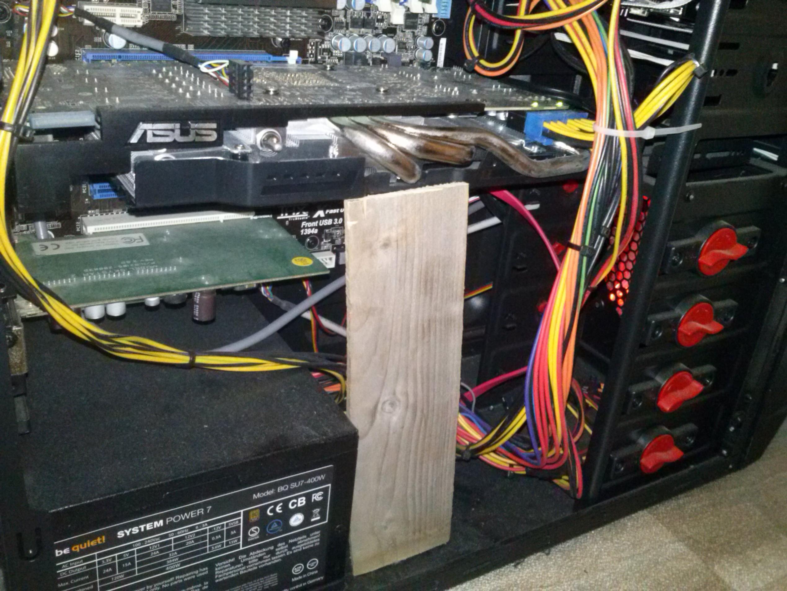 Seit einem halben Jahr hatte ich das Problem, das ich nach dem kauf meiner Asus hd 7870 directcu ii nach kurzer Zeit heftige Hitzeprobleme hatte. Habe den fehler gefunden und zwar kam es mir schon am ersten Tag etwas Komisch vor. Ich habe einen Normalen Midi Tower. Die GraKa pass gerade mal auf den Millimeter genau in das gehäuse und wird mit ihren über 1 kg nur vom PCI-E Stecker und einer kleinen M3 schraube gehalten... Ich dachte mir schon das hebt doch nie. War mit der Graka 2 Monate voll zufrieden bis aufeinmal mein PC sammt Gehäuse immer zum Backofen wurde. Schaltete ständig bei Spielen ab oder bekamm Bluescreens. Hab natürlich alle möglichen Lüftungsteuerungsoftwares benutz und geschaut woran es liegt und habe immer die CPU in verdacht gezogen da die immer 80 Grad heiß wurde. Jett ist es so das ich gemerkt hab, das wenn ich die Lüftersteuerung der Graka anschmeiße und auf Manuel umstelle um 100% zu geben sich nichts tut. Wenn ich die Graka ein bischen nach oben drücke drehen die Lüfter auf. So was mache ich nun? Zu den dazugehörigen Fragen: