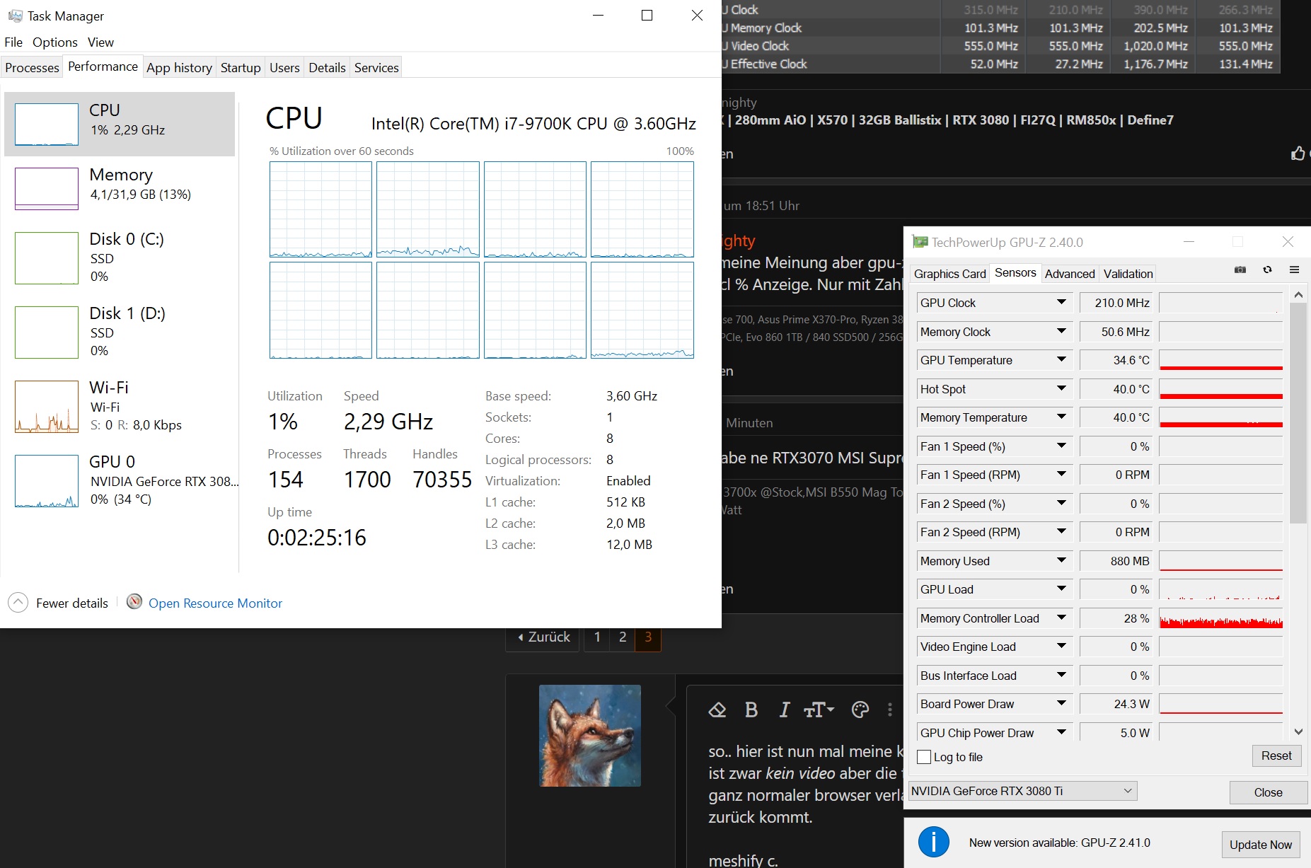 - Weitere Hardware, die offensichtlich mit dem Problem zu tun hat(Monitormodell, Kühlung usw.): Alpenföhn Gletscherwasser 280, 7x Noiseblocker eLoop X, untere und obere Lüfter blasen nach oben, der hintere nach hinten raus.