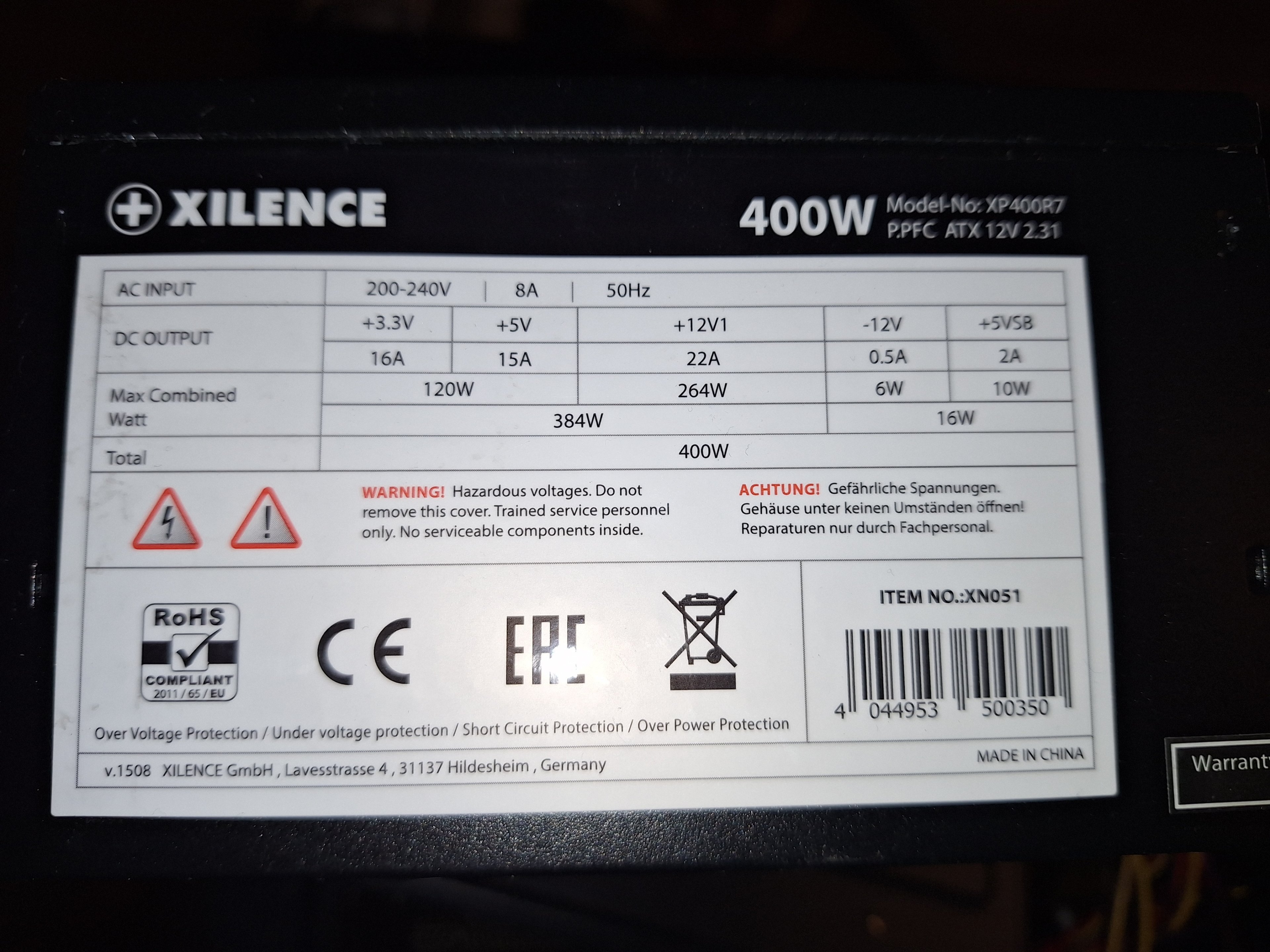 - Netzteil ALT eingebaut XILENCE 400W verlötet / Neu mitgekauft PB1200P Platinum 80Plus mit Kabelmanagement