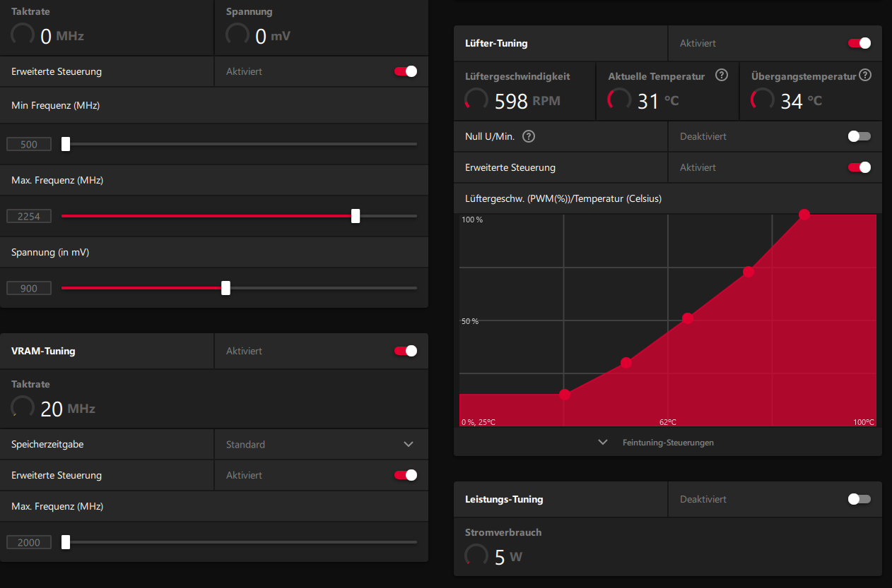 Wenn das Runtertakten der RX6800XT wenigstens unter Linux klappen würde. Leider verharrt der Speicher bei 1000Mhz wenn man größer als FHD unterwegs ist, was sich bei mir recht deutlich in der idle Leistungsaufnahme niederschlägt: 50W (Win) zu 105W (Linux) Gesamtsystem. Sehr ärgerlich und bisher auch noch keine Besserung in Sicht.