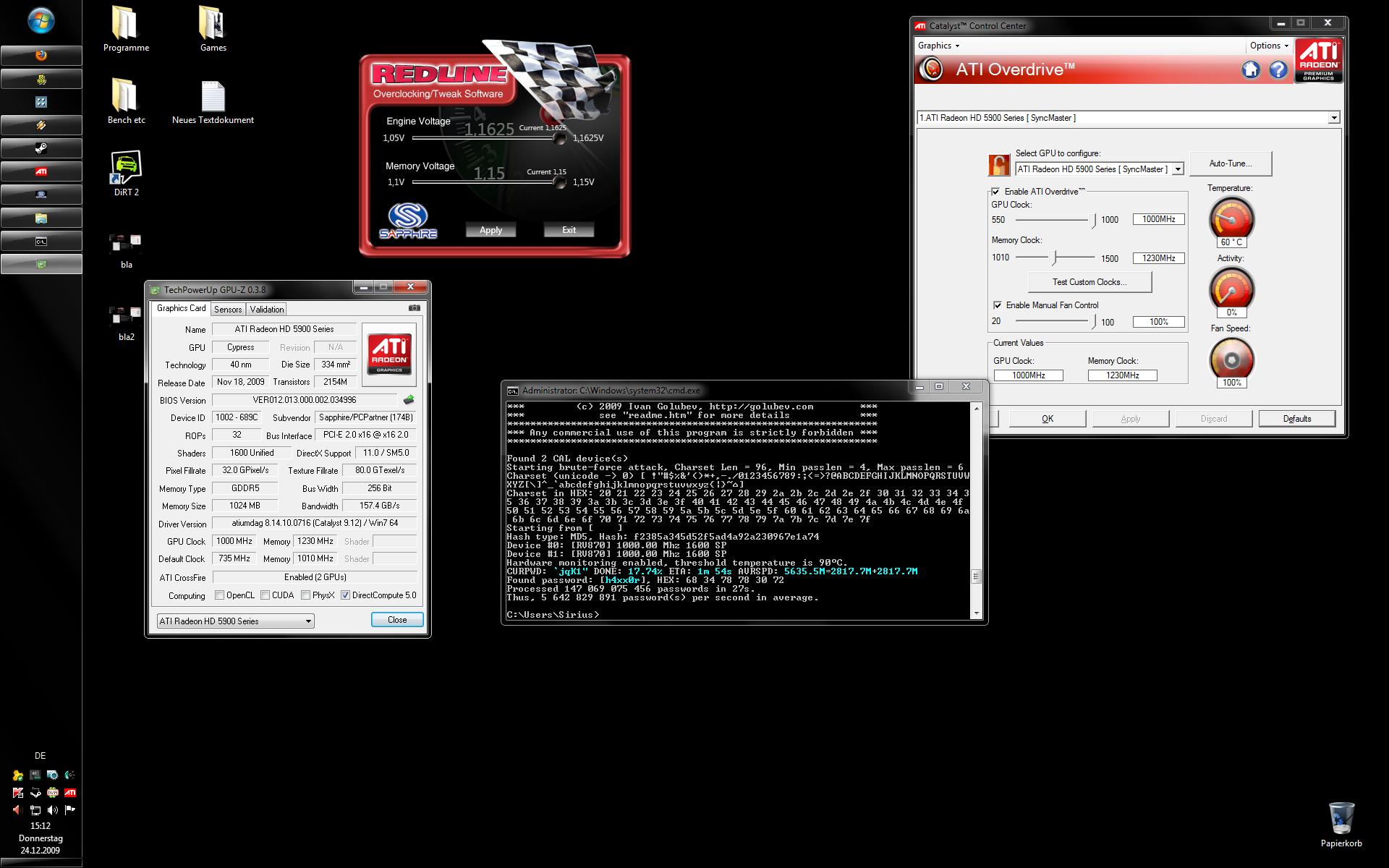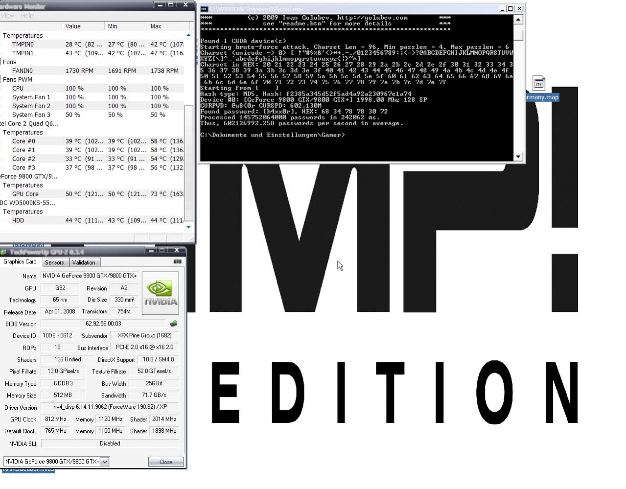 Genutzt wird HASH GPU, für nVidia und ATi Grafikkarten gleichermaßen geeignet.http://www.golubev.com/hashgpu.htm