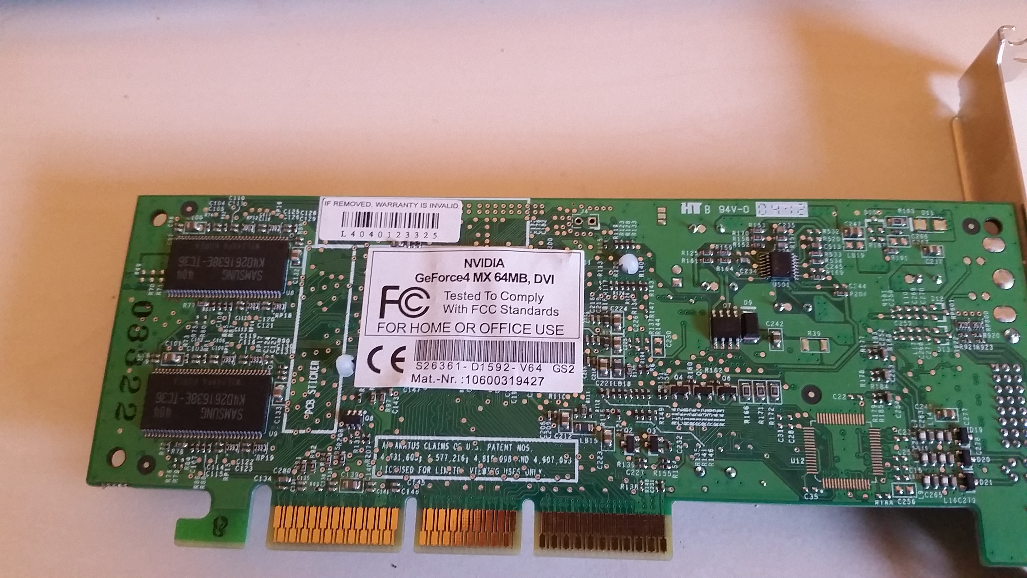 Eine OEM GeFroce 4 MX 64MB mit DVI. Vermute die war in dem Fujitsu PC verbaut dessen Einzelteile ich ersteigert habe.