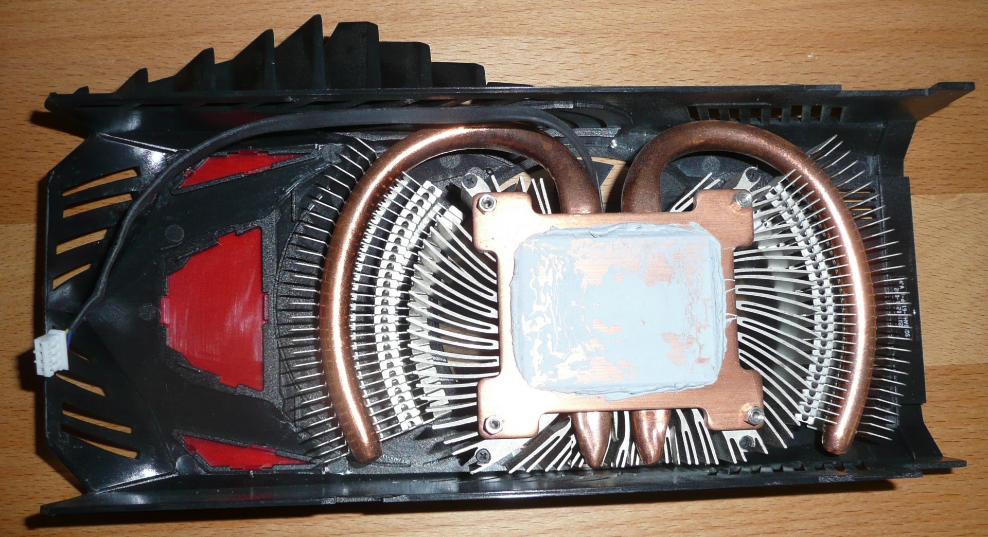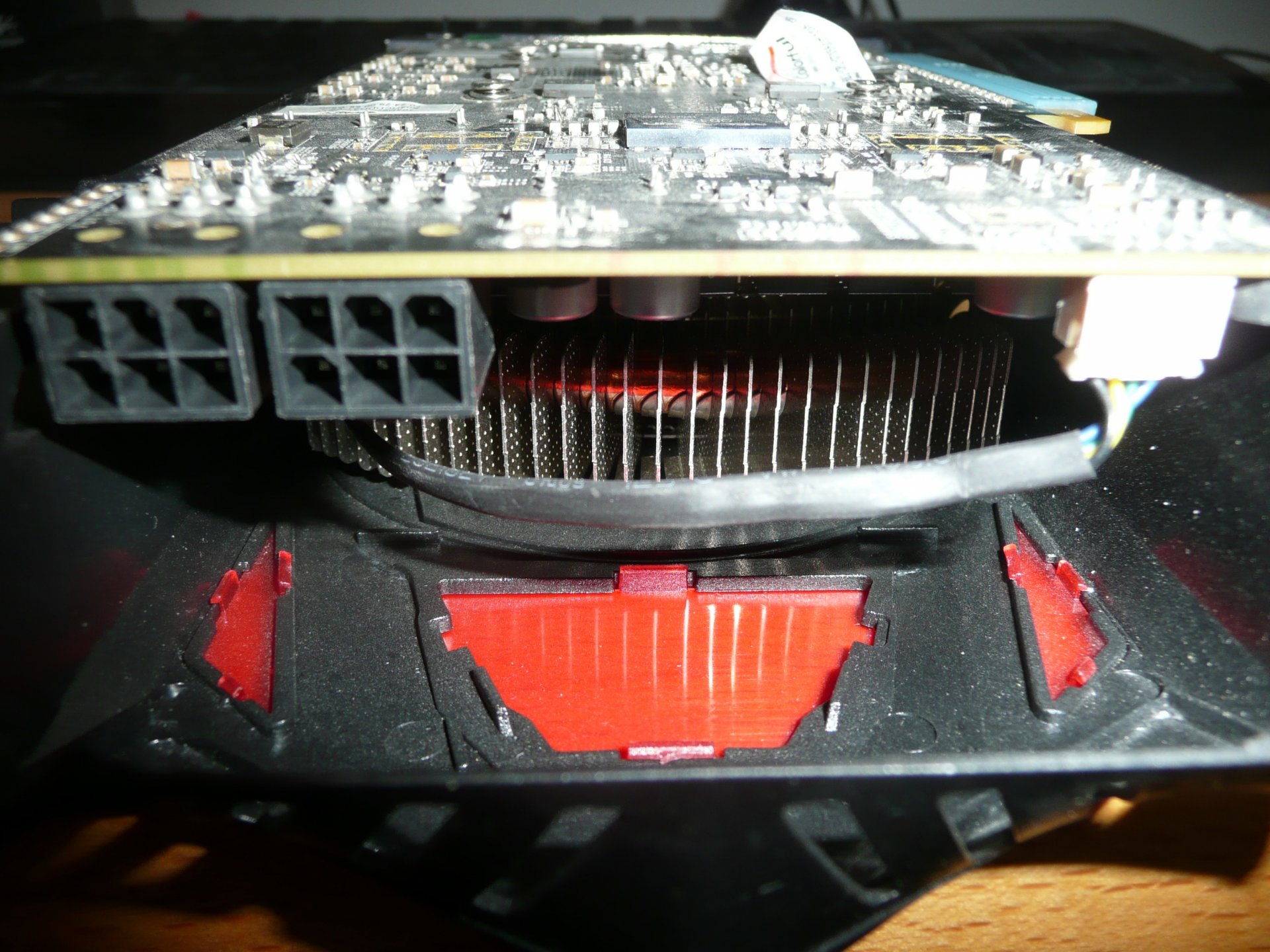 videospeicher natürlich komplett ungekühlt. standardlüfterkurve von der karte war auch etwas dämlich, sobald die GPU 70°C oder so erreicht hat sind die lüfter (zumindest gefühlt) amok gelaufen. mein gedämmtes Deep Silence 5 mit langsam drehenden caselüftern mochte die karte auch überhaupt nicht. in meinem alten Cooler Master Elite 430 lief die dagegen auch übertaktet (1267/6700MHz) relativ leise und kühl.