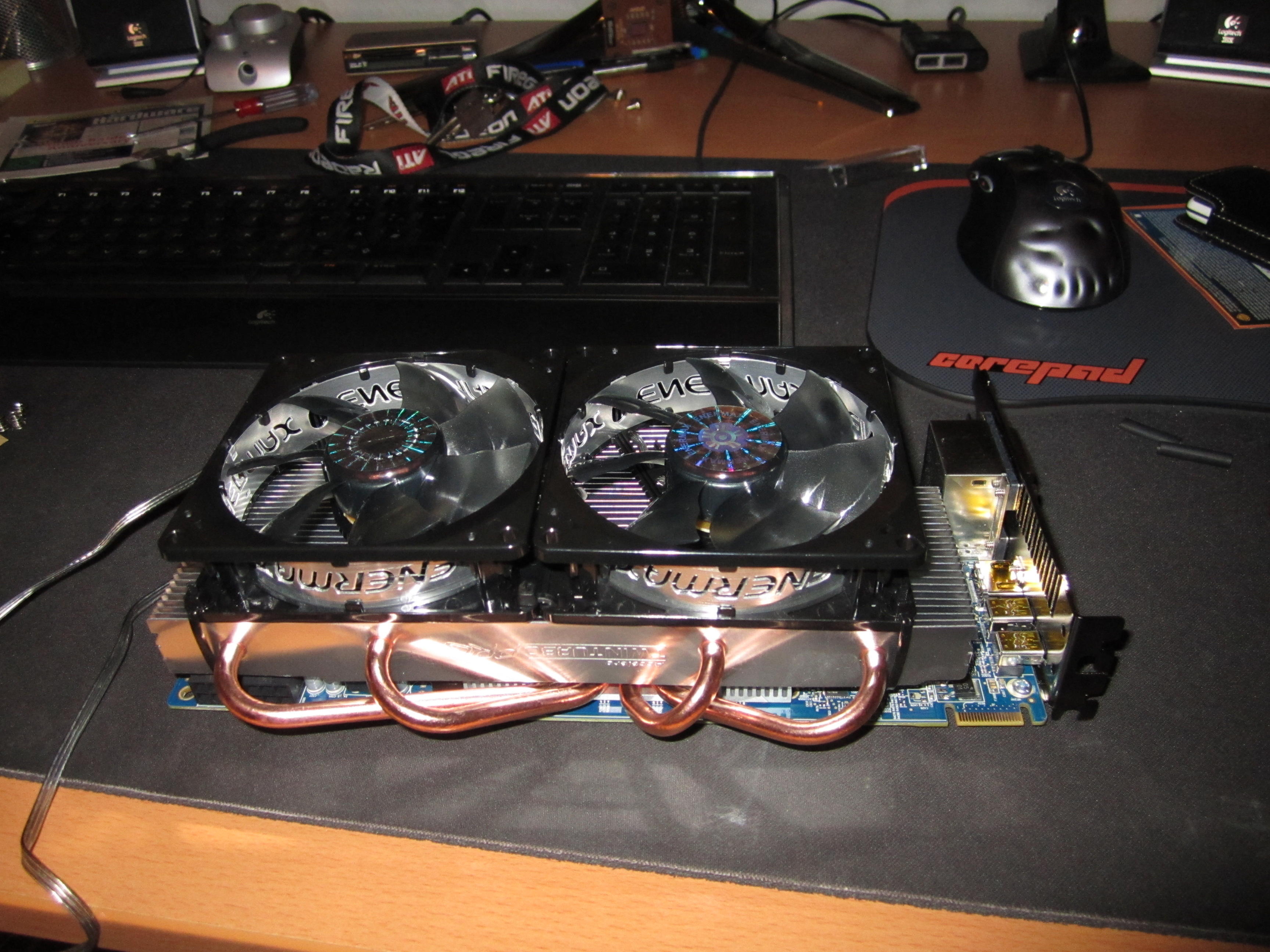4. Accelero S1 mit 2x 120mm Lüfter ebenfalls von AC drauf - Rahmen entfernt (Gewicht und Coolness)