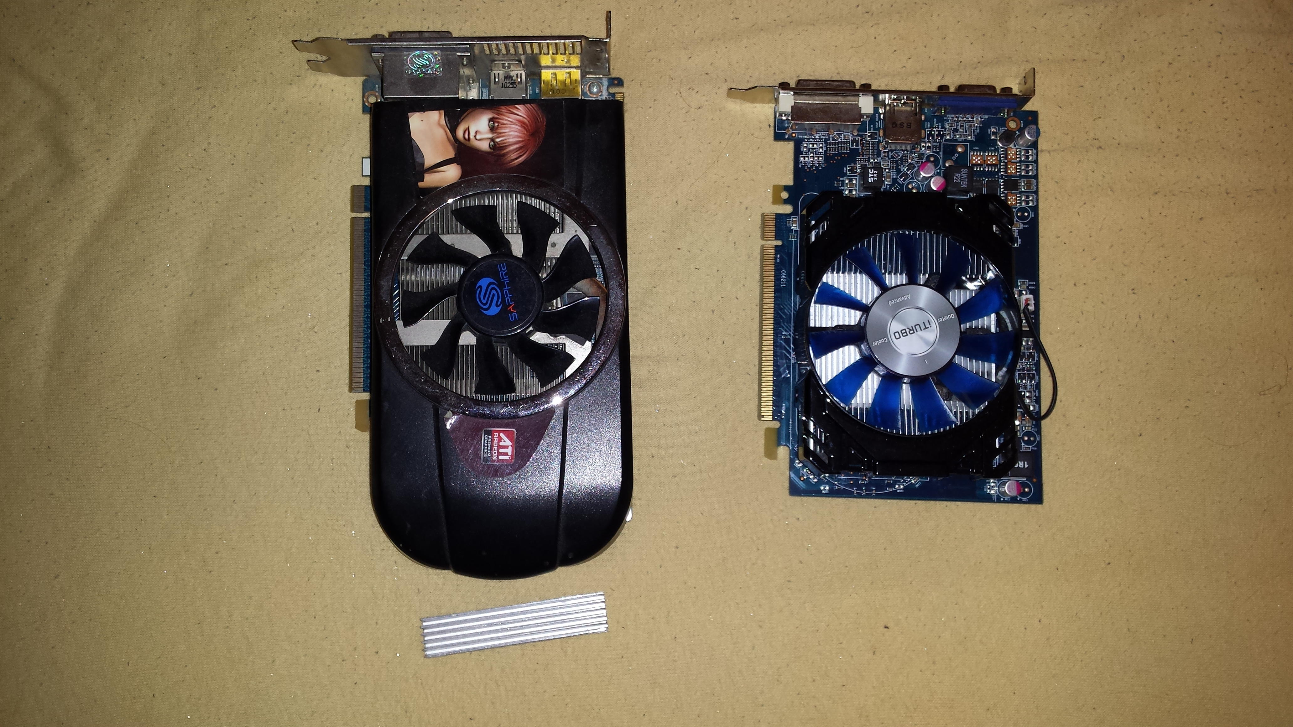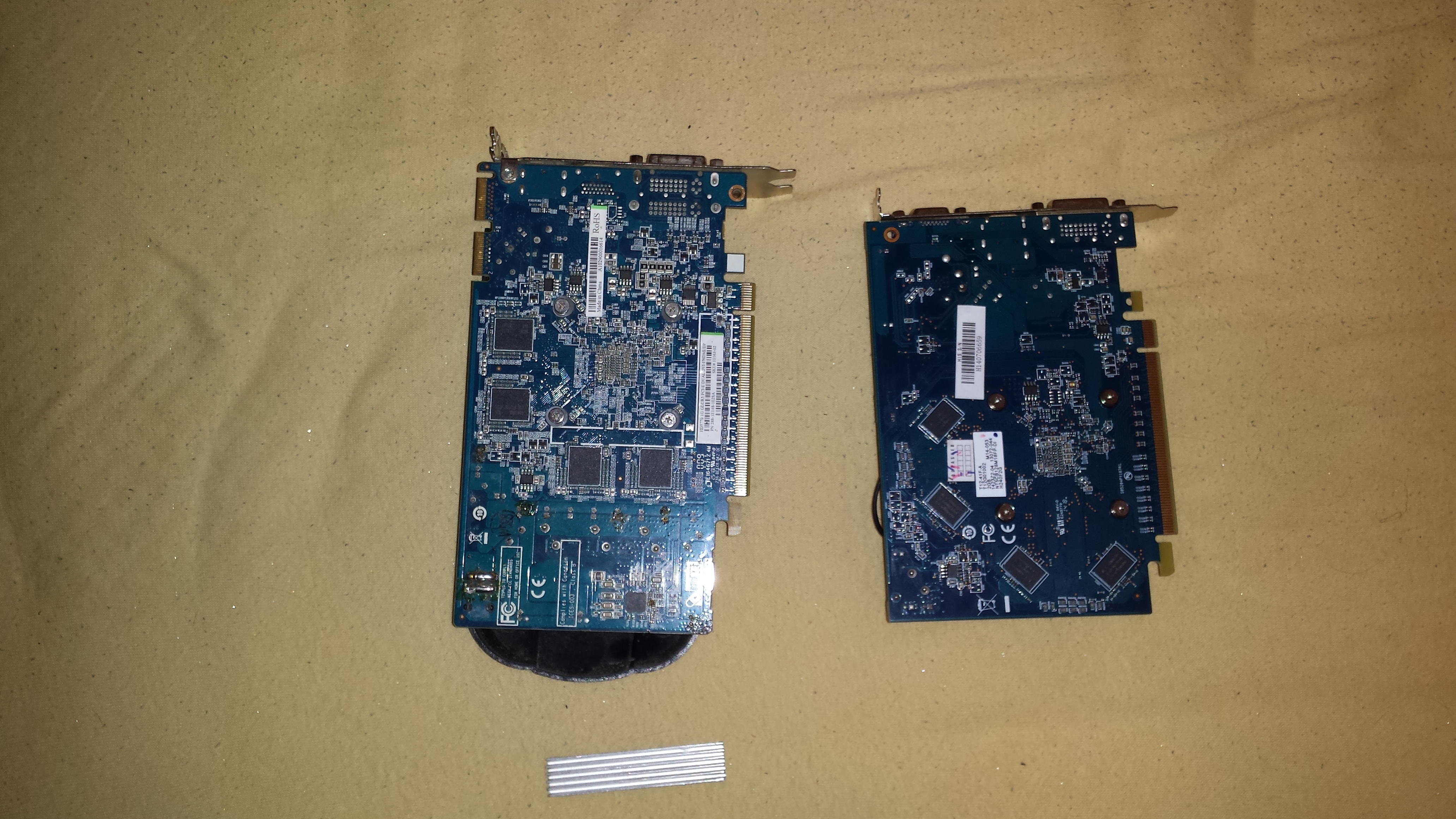 Meine Radeon HD 5770 und R7 240, die 5770 hat nen Kurzen, Transistor beschädig, muss gewechselt werden. Die r7 240 läuft einwandfrei. Muss außerdem den Kühlkörper nach erfolgreichem Bauteil wechsel wieder an Ort und Stelle befestigen.