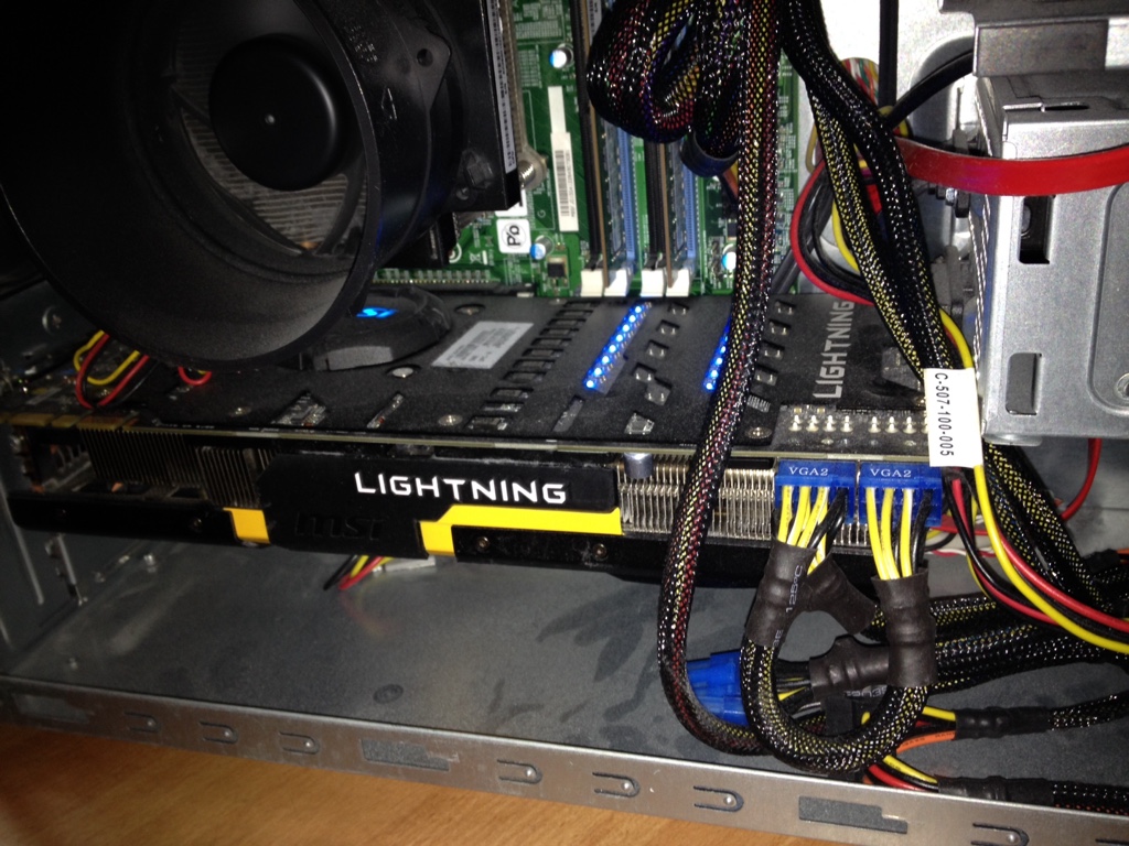 Habe hier noch ein Foto von meiner HD7950 Windforce gefunden. Tja was soll ich sagen, leider schnurrt das Ding nach bald 3 Jahren immernoch wie ein Kätzchen und reicht auch für aktuelle Spiele mehr als aus.