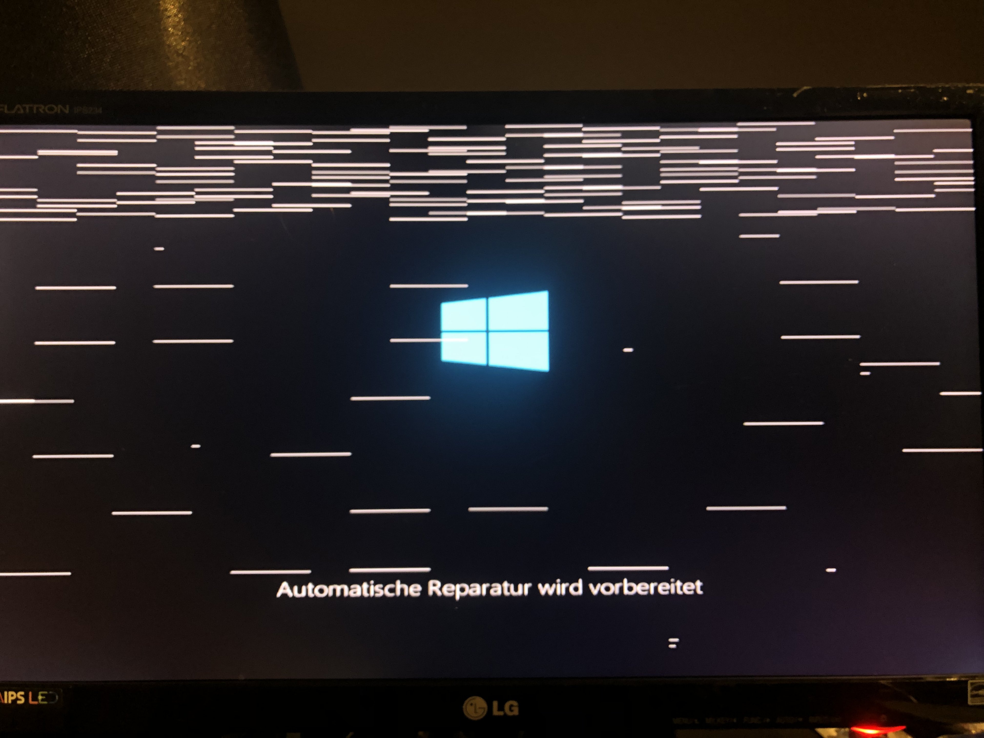 Der Fehler zeigt sich direkt nach dem Hochfahren (Bild 1) danach folgt ein schwarzes Bild (Bild 2).