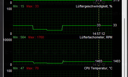 Jedoch wenn ich den Fan Speed auf ca. 40% stehen habe, drehen die Lüfter immer nur kurz an und gehen wieder aus, so konnte ich es auch am Lüftertachometer feststellen. Aber wenn ich es auf 46% stelle, drehen die Lüfter konstant. Woran könnte dies liegen?