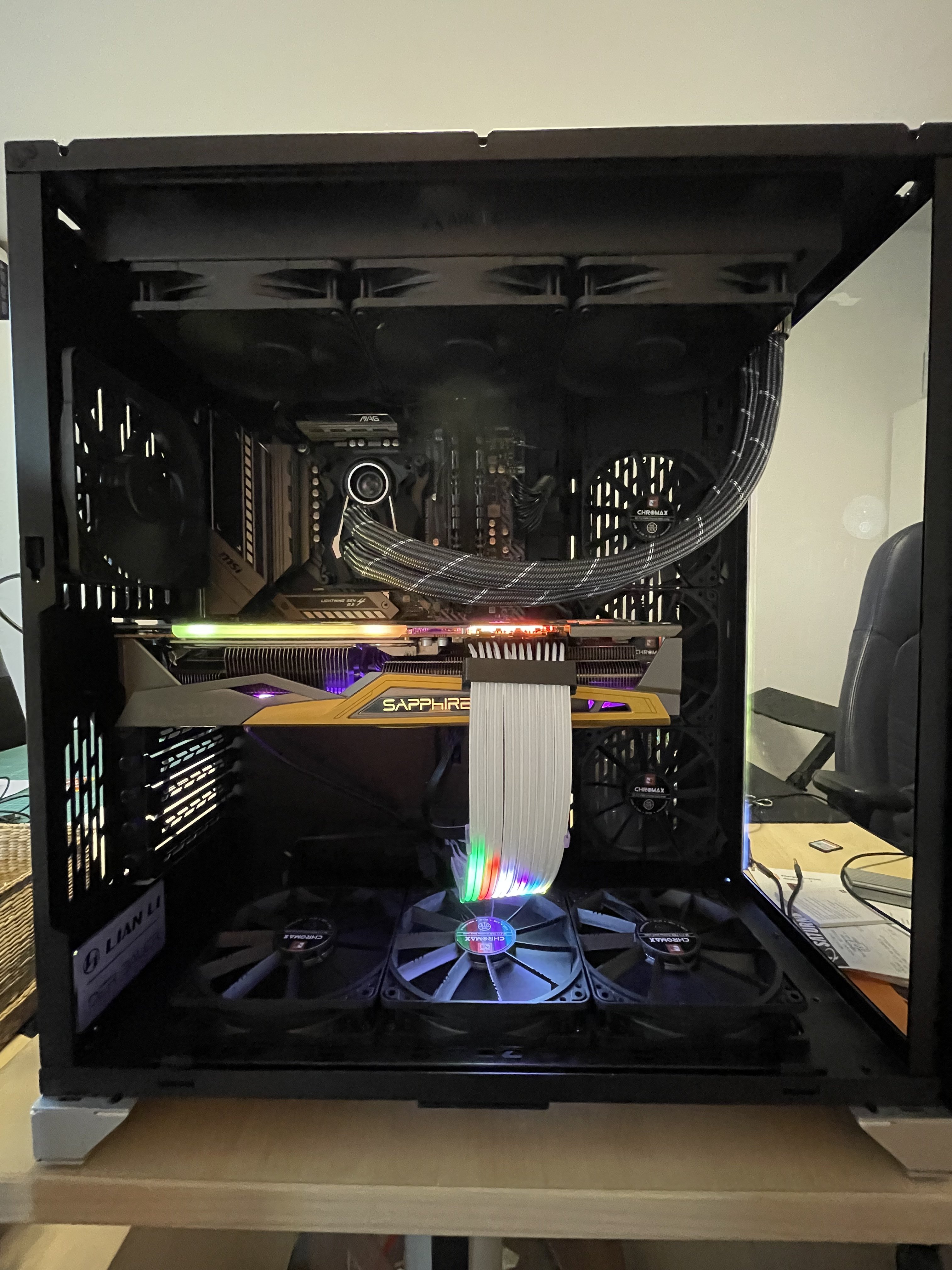 Es stellt sich sowieso ohnehin zunächst die Frage, ob man überhaupt ein Maximum an Leistung benötigt. Es wird nicht gleich nach Erscheinen eine neue Generation Spiele herauskommen, die diese benötigt. Der einzige Grund meine RTX3080 zu ersetzen wäre nur das Mehr an Grafikspeicher, was das Leistungsniveau angeht, müsste sie einfach nur bei 4k etwa dieselbe Leistung liefern. Ich besitze noch ein Phanteks Eclipse P500A mit klassischem Vorne-Hinten-Oben AiO-Ausbau. Aber da etwa zeitgleich eine neue CPU-Generation herauskommen wird, würde ein kompletter Neuaufbau ins Haus stehen – und da denke ich wird dann ohnehin mit anderen Parametern gerechnet.