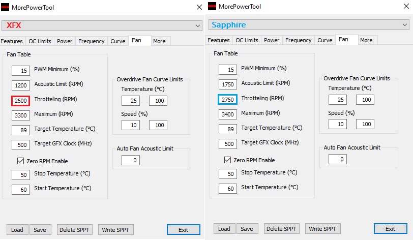 (die FE wg. der Vram-Temps und die XTXH von XFX wg. der niedrigen Throttlevoreinstellung vom Lüfter)