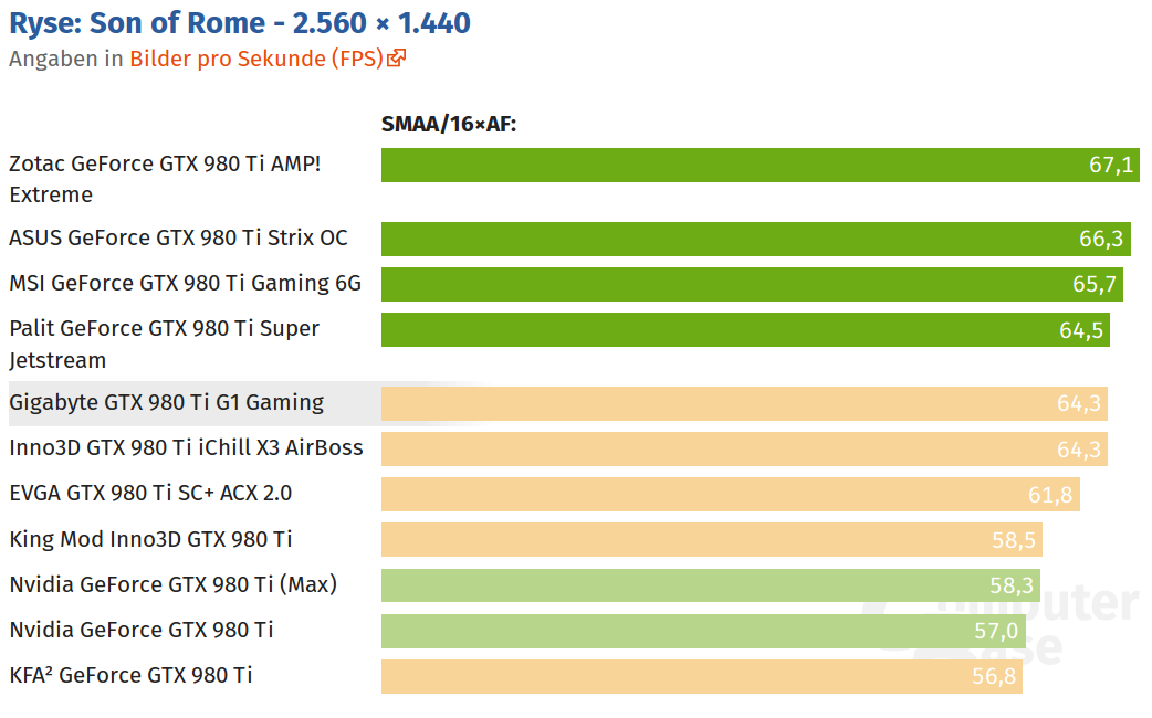 Von der Performance her, holt die R9 390 dann auf die Ti auf, der Verbrauch ist aber mit 100 Watt höher. Die 980 GTX spielt von der Performance auf einer anderen Liga, man müsste die Karte im Endeffekt mit der 390 gegen vergleichen, aber selbst die ist unter DX12 je nach Auflösung ca 10% schneller.