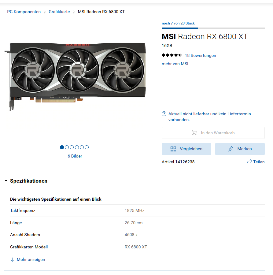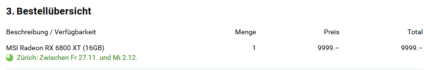 Bis man dann auf der Seite des Händlers ist, wird die Karte wieder vergriffen sein.
