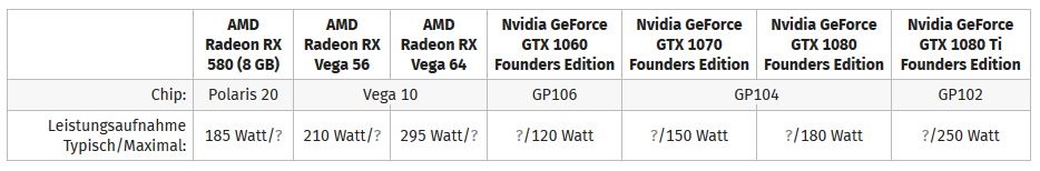 und bei der Vega64 zur 1080 Ti wird für zum Teil deutlich weniger Leistung 50 Watt mehr gebraucht.