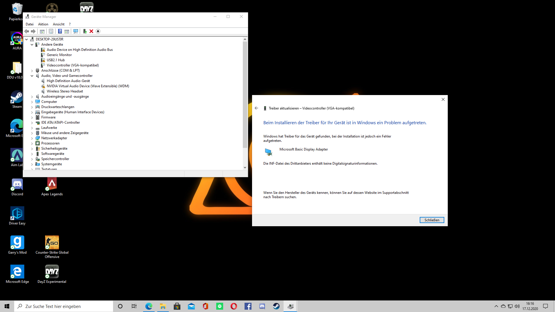 ich hab jetzt den pc zurückgesetzt und jetzt steht da microsoft basic display adapter statt 3060 ti