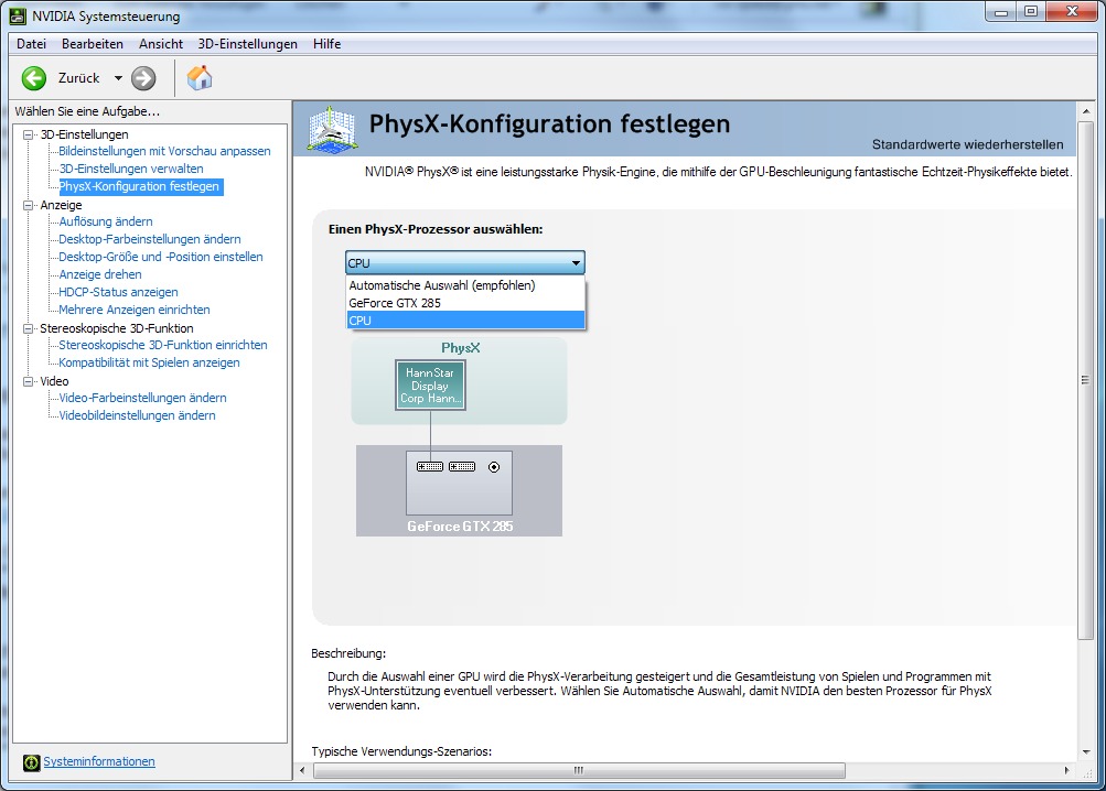 Seitdem nVidia den 200er-GeForce-Treiber eingeführt hat sieht das entsprechende Control Panel-Menü aus wie im Screenshot.