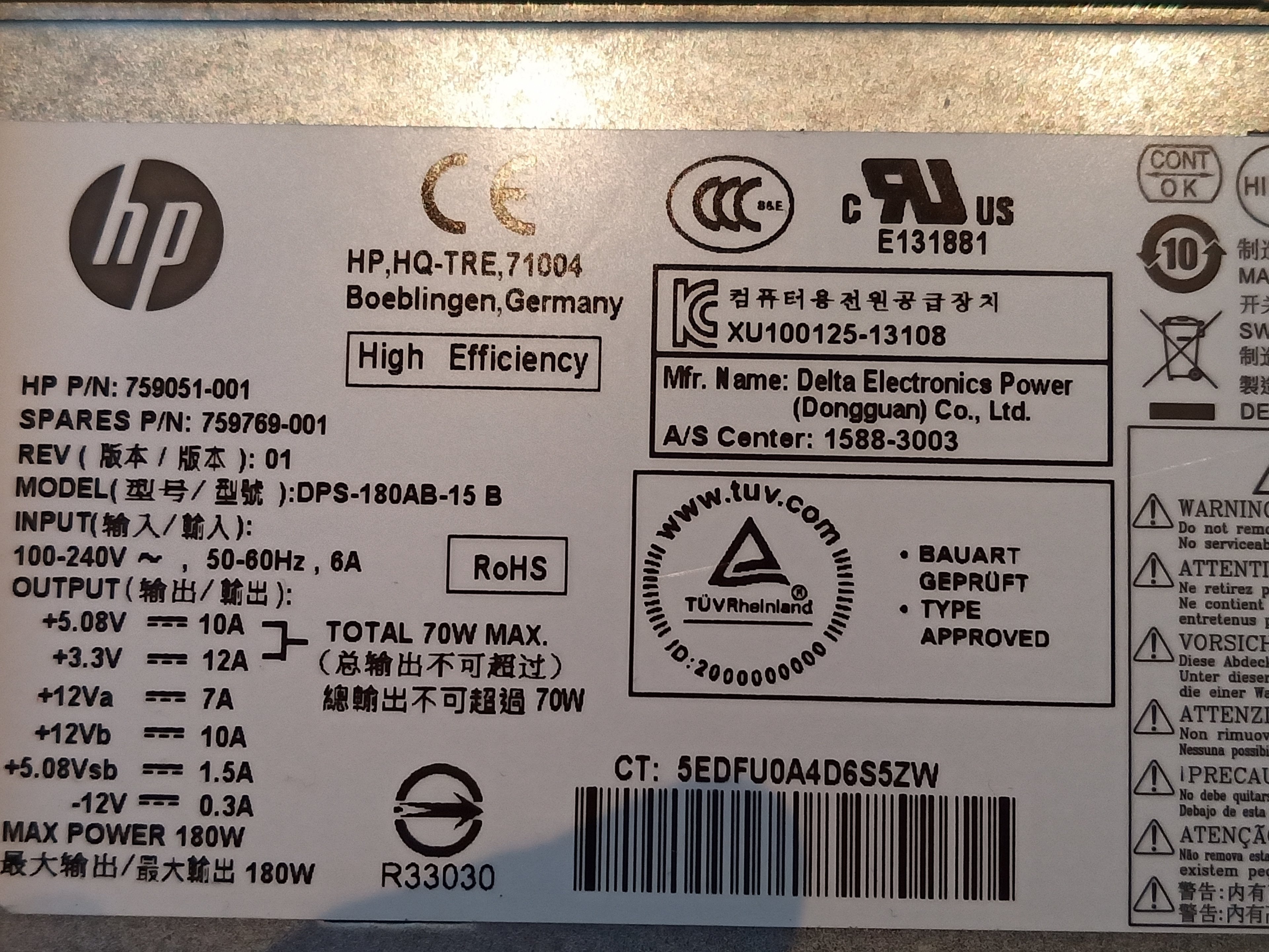 - Netzteil(Genaue Bezeichnung): HP 180W