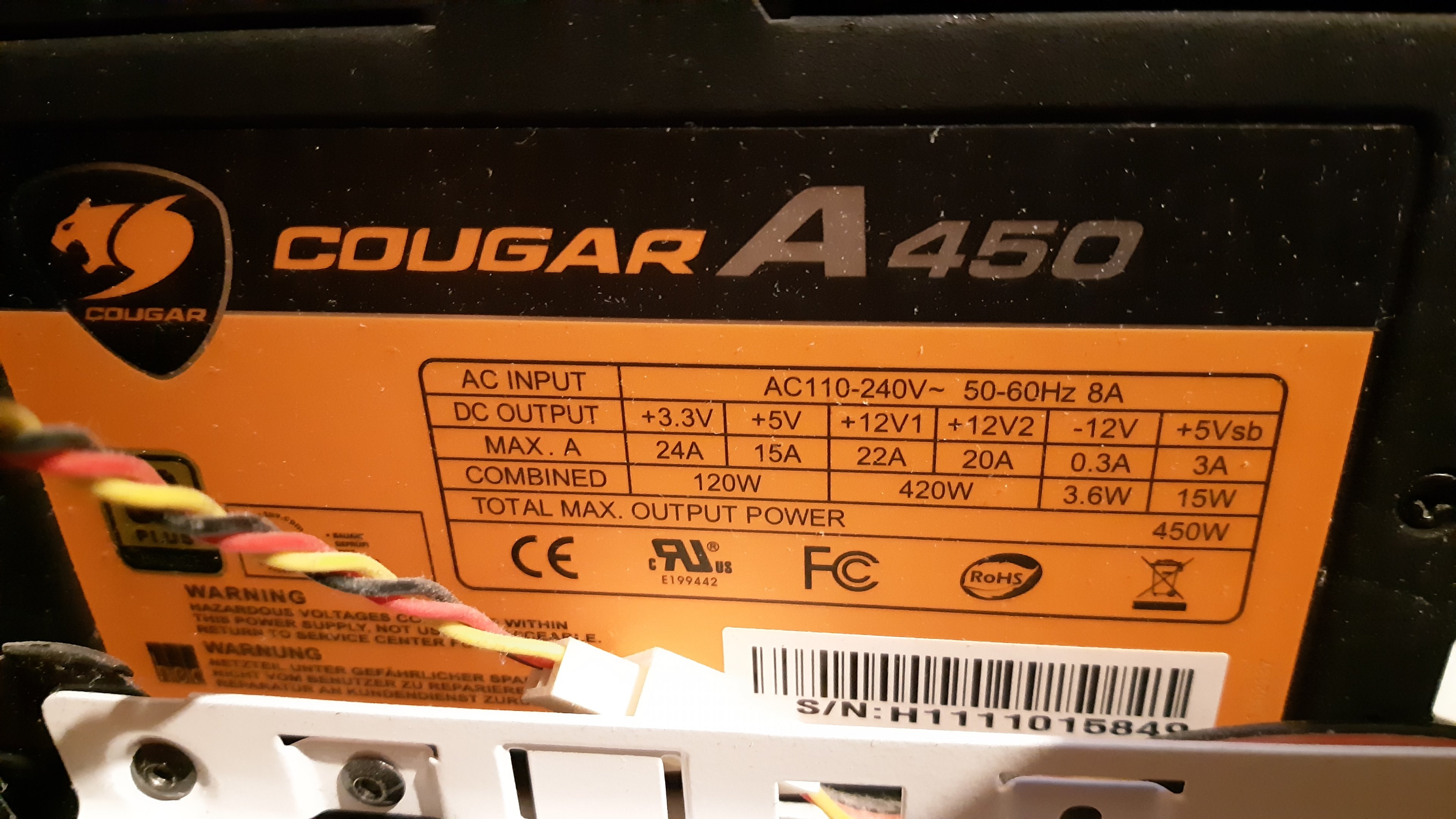 • Netzteil weis ich nur die Infos die ich oben geschrieben hab (Cougar 450 Watt NT) oder welche Info wird speziell benötigt? Sonst schau ich nochmal genauer ob was drauf steht.