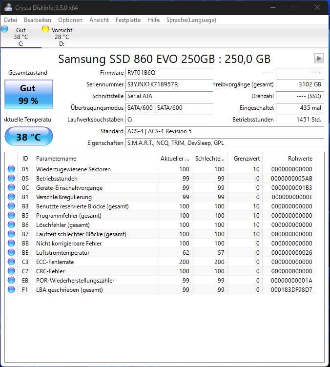 - HDD / SSD: …kleine 250gb ssd und 1 TB HDD. Wird noch umgerüstet