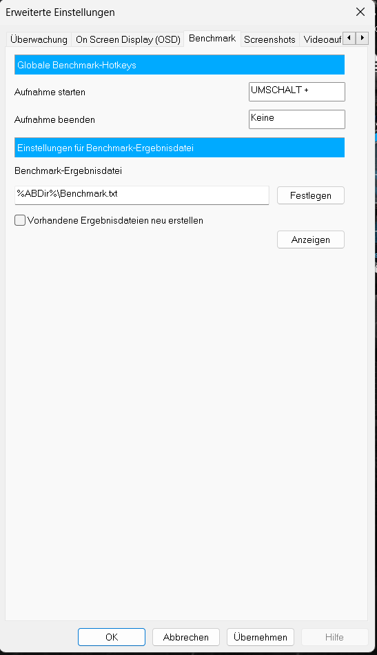 Hier kann man Tasten definieren damit man die Überwachung als Text aufzeichnen kann.