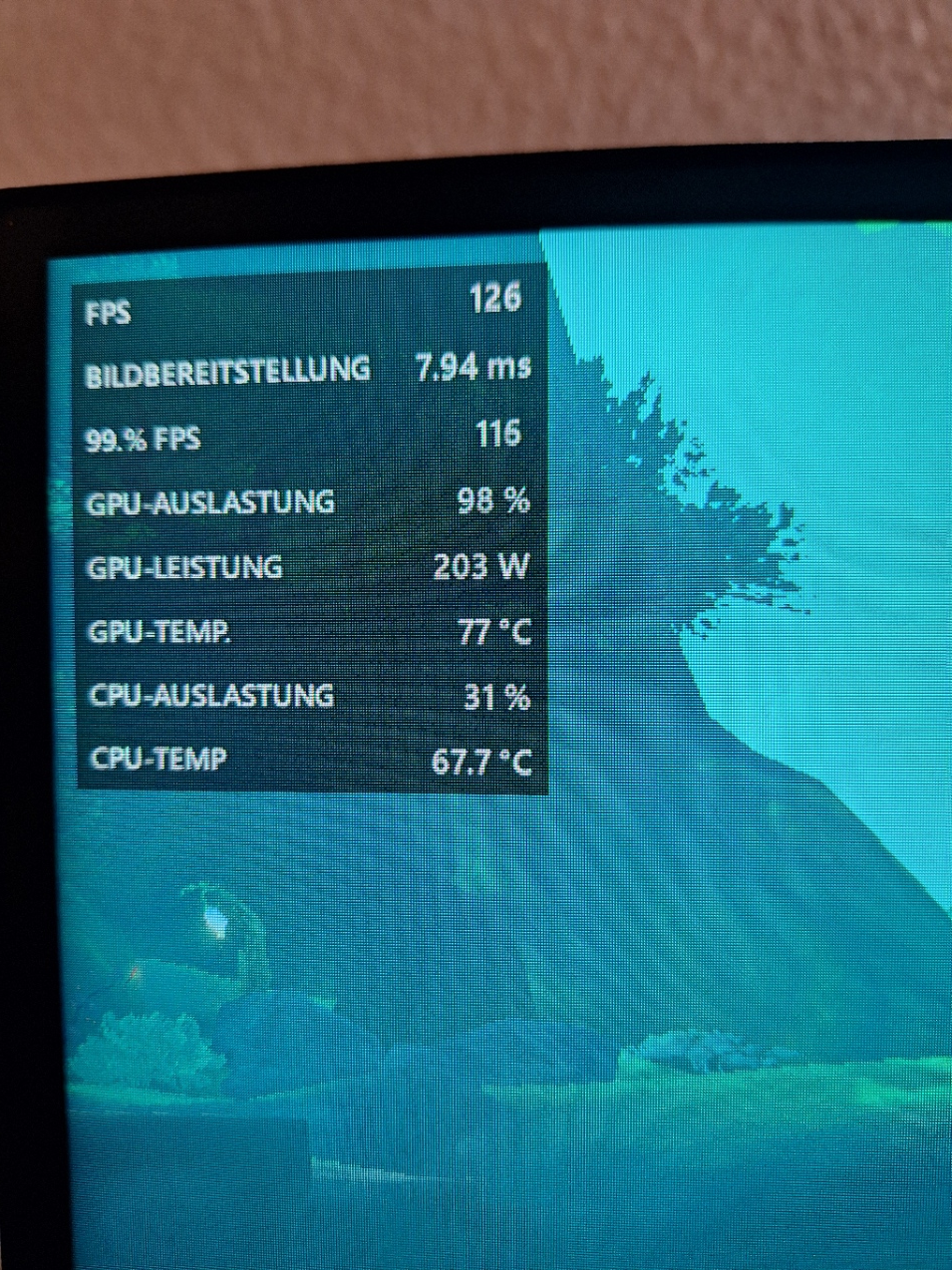 Wenn man dann auch HWINFO 64 installiert kann man sich alles anzeigen lassen im Spiel was man will.