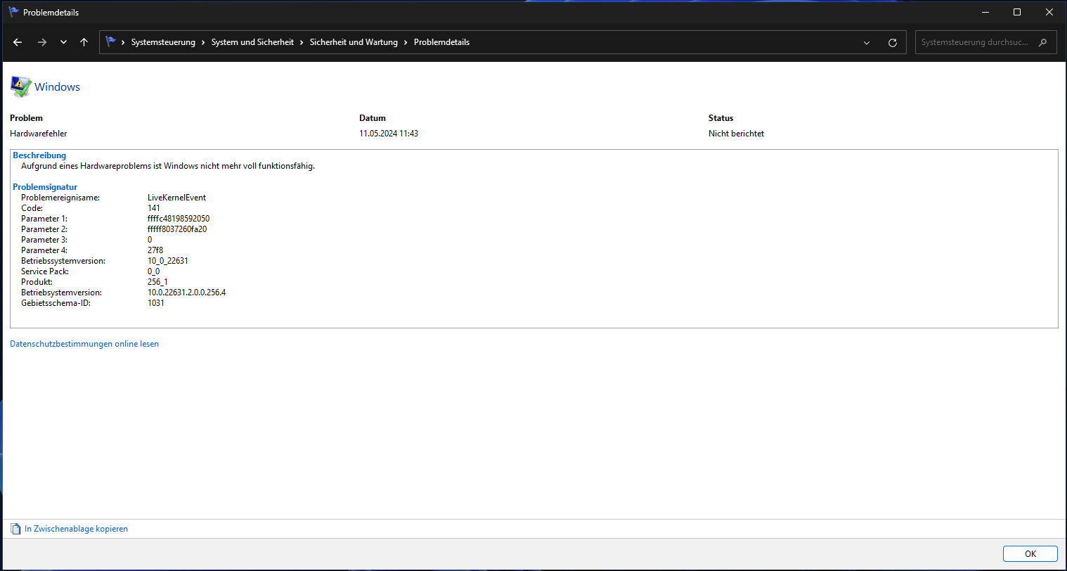 Mein Kumpel (Gelernter ITler ) hat mir heute das Bios Resettet, den Ram manuell neu eingestellt, win11 neu installiert, alle Treiber neu drauf...