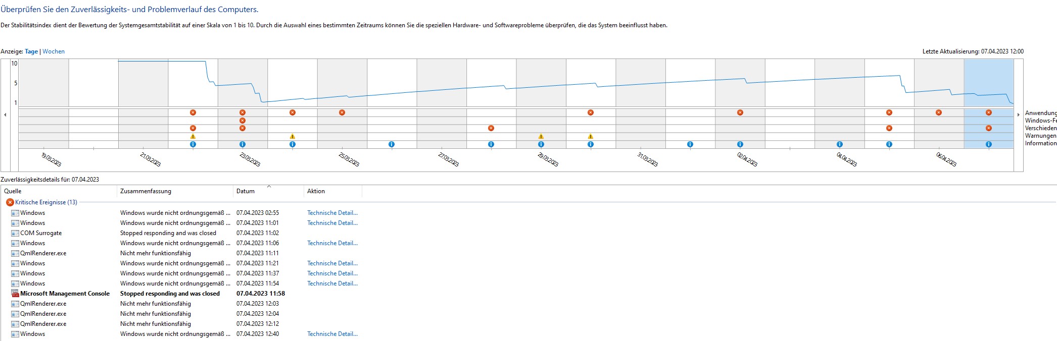 Ich habe am 06.04.2023 mit einem Freund eine Anno 1800 Session gemacht. Diese hat ca. 8 Stunden gedauert bis es zu einem Systemabsturz kam. Da es spät in der Nacht war haben wir einfach aufgehört und ich habe nicht weiter geschaut woran es gelegen hat. Heute Morgen (07.04.2023) habe ich Valorant gestartet und nach kurzer Zeit kam es wieder zum Absturz. Ich habe erneut versucht zu starten, wieder. Beim Start habe ich mir die Grafikkarte angeschaut und die Lüfter haben gedreht. Als ich nach dem Start auf dem Desktop angelangt war habe ich nochmal geschaut und habe bemerkt, dass die Lüfter der Grafikkarte ausgegangen sind. Normalerweise sind die immer an auch im Idle.