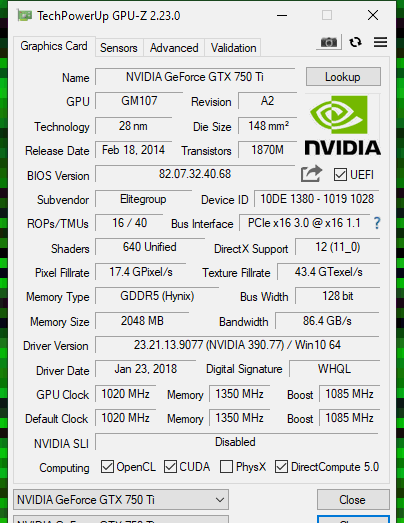 ich habe ein Problem mit dem Lüfter meiner Nvidia Geforce GTX 750 Ti. Beim gestrigen öffnen meines PCs zwecks Reinigung ist mir beim Absaugen meiner Grafikkarte aufgefallen, dass sich der Grafikkartenlüfter händisch nicht bewegen lässt Nachdem ich den PC gereinigt und angeschlossen hatte, fiel mir auf dass der Grafikkartenlüfter sich im normalen PC Betrieb immer noch nicht dreht. Daraufhin habe ich meine Grafikkarte mit dem Tool "Stress my PC" ausgelastet und die Temperatur mit dem Tool GPU-Z überwacht.