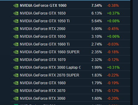 Die Statistik sagt nichts über Motive oder sonst etwas aus außer, wie viele Karten des jeweiligen Modells in Benutzung sind. Ich hatte ne 1080 bevor die übern Jordan ging und habe eine 2070 als Ersatz bekommen. Sowohl die 1080 als auch 2070 langen dicke aus. Die 2070 noch eher da sie DLSS hat.