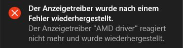 seit nun etwa einem Monat habe ich folgendes Problem, während des Spielens bekomme ich ein Standbild dann Ruckelt es einmal kurz und anschließend bekomme ich einen Blackscreen. Wenige Sekunden danach kommt dieser Windows Fehler Sound und die Nachricht: Der Anzeigetreiber wurde nach einem Fehler wiederhergestellt. Der Anzeigetreiber "AMD driver" reagiert nicht mehr und wurde wiederhergestellt. Was ich nicht verstehe, meine Grafikkarte ist beim Spielen nie wirklich unter volllast. Ich habe schon mehrere Sachen versucht, doch bis jetzt habe ich keine Lösung gefunden. Hatte auch schon die aktuelle Treiberversion, aber auch das löste den Fehler nicht.