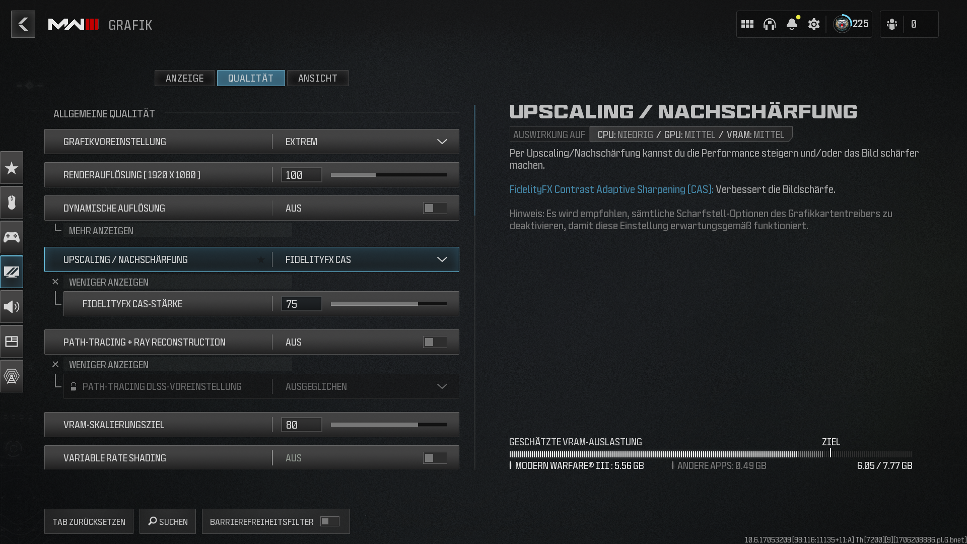Die Grafik-Einstellungen habe ich vom Nvidia GeForce Experience "Optimieren" lassen. Aber mir gefällt das Ergebnis nicht wirklich.