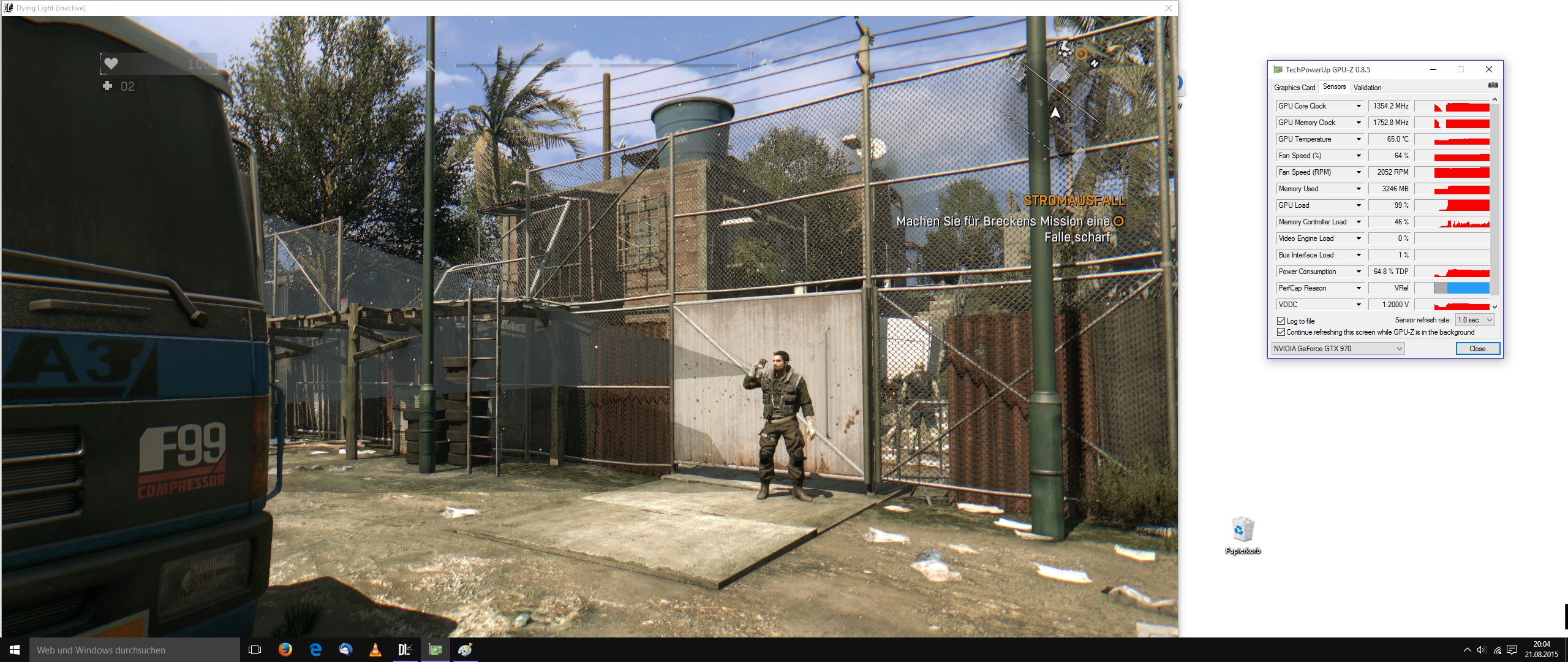 Ich spiele normalerweiße auf 2560x1080 und habe mit keinem meiner Spiele Grafikprobleme wie in Dying Light (Die Screenshots sind leider nicht sehr aussagekräftig, aber man erkennt mein Problem).