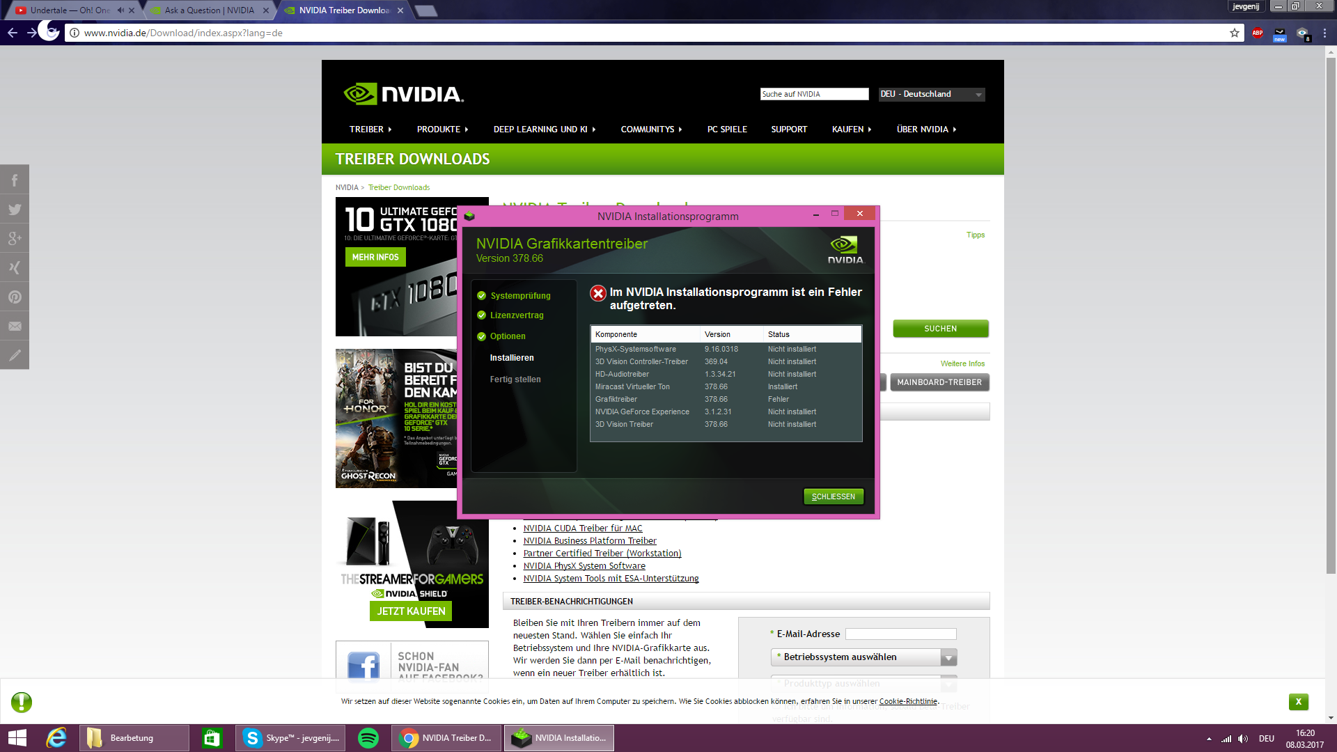 Ich habe gestern meine neue Grafikkarte die nvidia geforce gtx 1050 ti eingebaut und jetzt funktioniert nichts mehr. Ich habe versucht den Grafiktreiber zu installieren, jedoch wurde mir nur ein Installationsfehler angezeigt, ebenso bemerkte ich heute, dass meine Grafikkarte nicht vom PC gesehen wird, also wenn man die zugewiesene Grafikkarte zu den Monitor anschaut ist es mein Grafikchip des Mainboards, jedoch war es gestern anders, gestern wurde mir die nvidia Karte angezeigt. Irgendwelche Ideen woran es liegen könnte? Meine CPU ist der Intel Core i7 4770k, BIOs Lenovo IIKT23AUS, Mainboard Lenovo Scharkbay, Arbeitsspeicher DDR3 8GB, die Grafikkarte nvidia geforce gtx 1050 ti, Monitor ASUS VN247, Laufwerk ST2000DX001-1CM164 und das Netzteil Lenovo-ThinkStation-S20-625W-80-Plus-Bronze-Power-Supply-41A9758-AcBel-FS8003. Danke für eure Antworten.