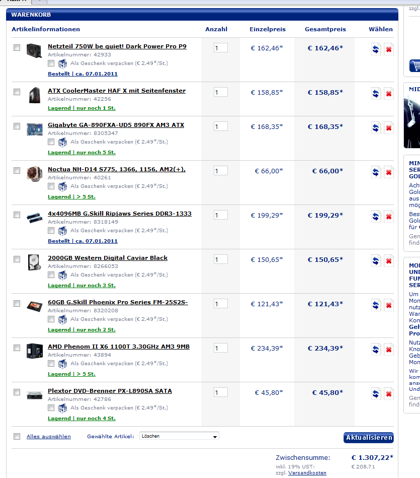 Ich hatte vor mir ein neues System zusammenzubauen und diese Teile bei mindfactory zu ordern. Allerdings hab ich nicht das Geld für eine 580 GTX.